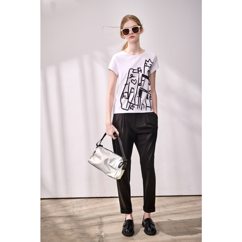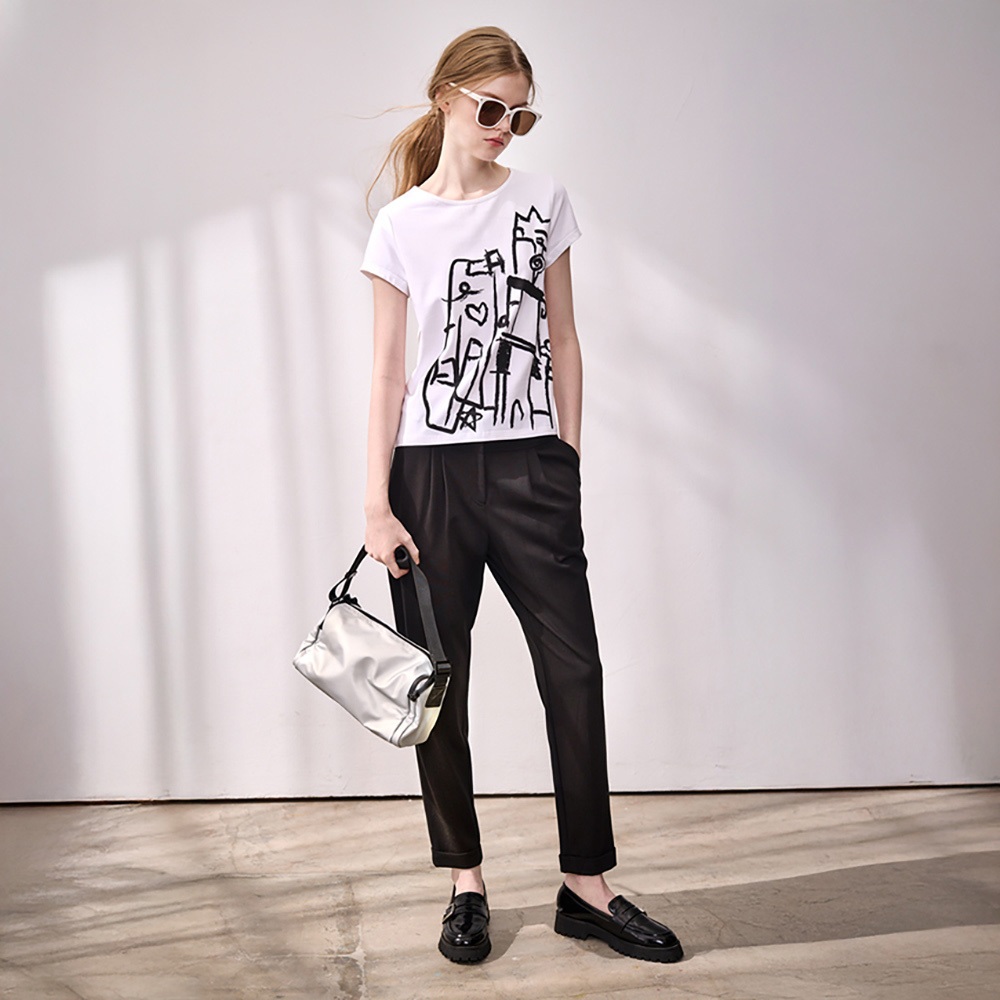 黑白格調 ● 打褶修身西裝褲黑,S|黑,M|黑,LPantsLe Polka