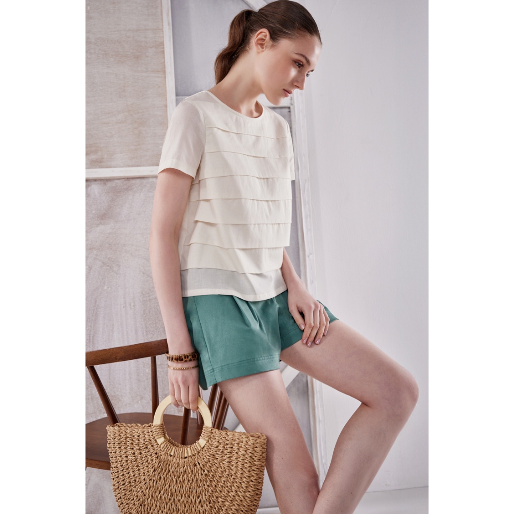 暮光記憶 ● A字打褶彈性短褲綠,S|綠,M|綠,LShortsLe Polka