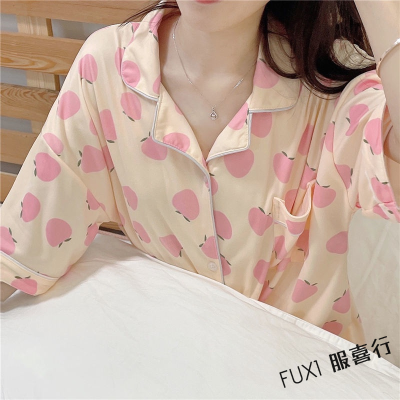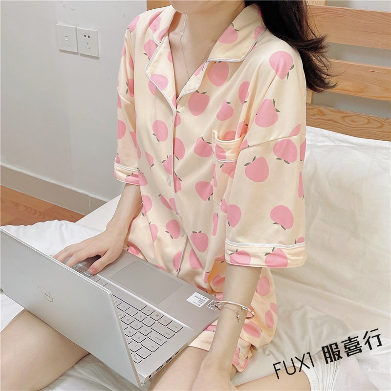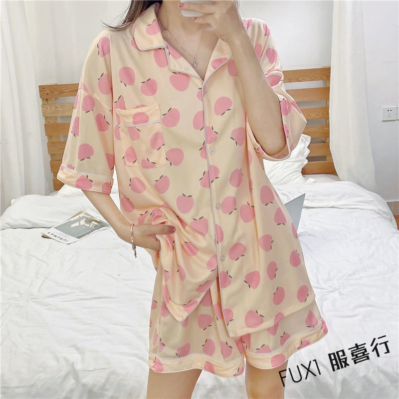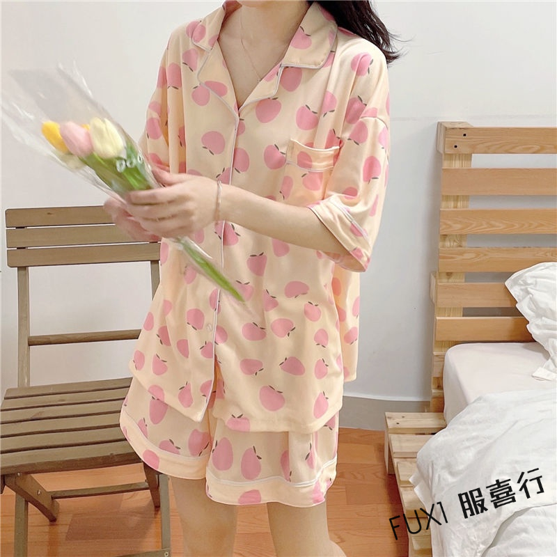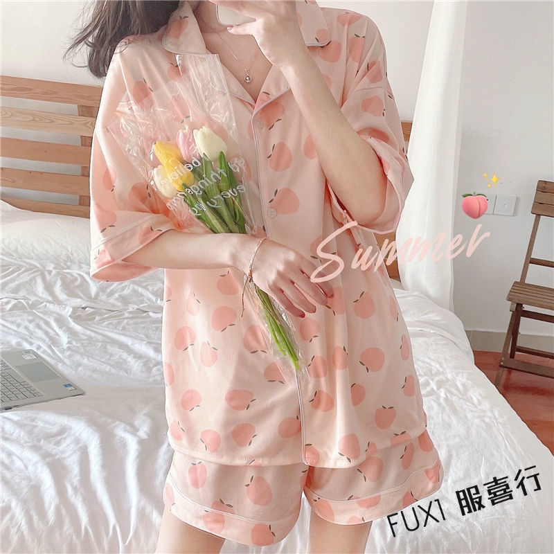 韓版短袖睡衣 女生睡衣套裝 成套睡衣 短袖短褲兩件套 居家服 開衫 甜美 外穿 家居服 短褲套裝粉色桃子套裝,L【50-60公斤】|粉色桃子套裝,XL【60-68公斤】|粉色桃子套裝,2XL【68-75公斤】|杏色桃子套裝,M【40-50公斤】|杏色桃子套裝,L【50-60公斤】|杏色桃子套裝,XL【60-68公斤】|杏色桃子套裝,2XL【68-75公斤】|粉色桃子套裝,M【40-50公斤】PajamasFUXI 服喜行
