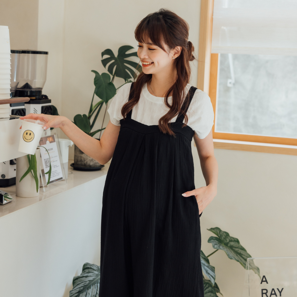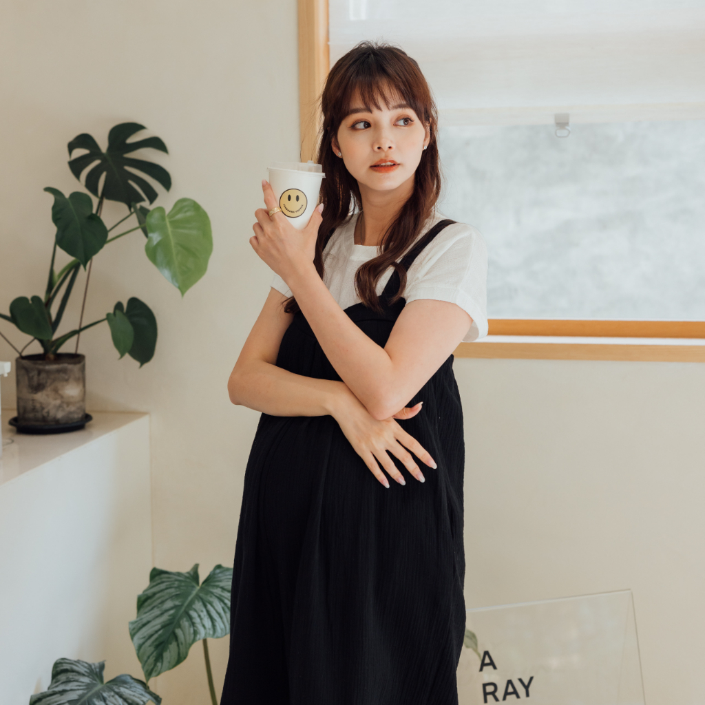 Mamamia孕婦裝 輕鬆日常立體坑條孕婦吊帶裙 M~L 正韓製 吊帶裙 吊帶洋裝 孕婦裝 孕婦洋裝 [A1922]奶茶,M|奶茶,L|黑,M|黑,LMaternity DressesMamamia孕婦裝