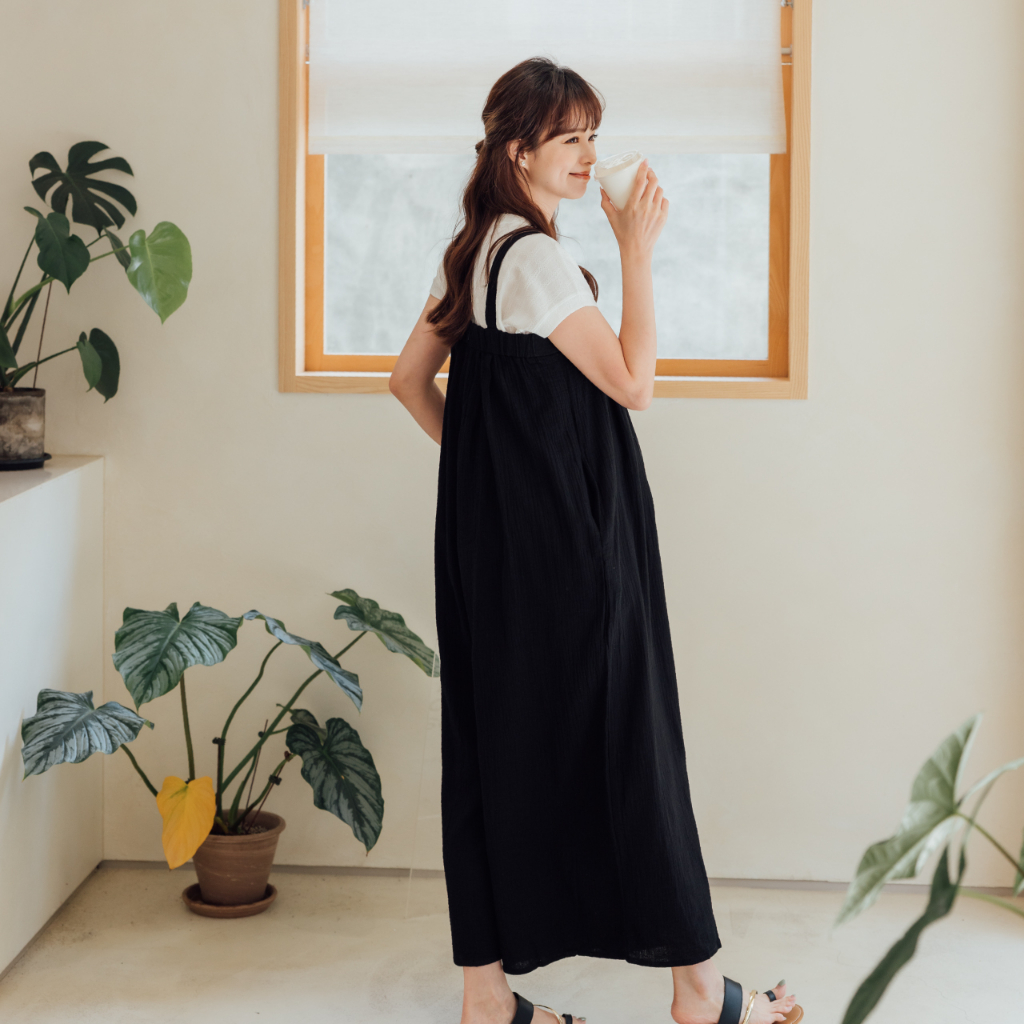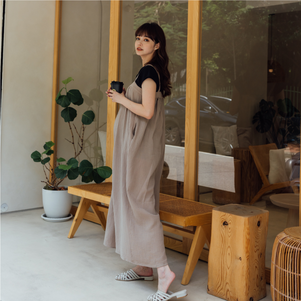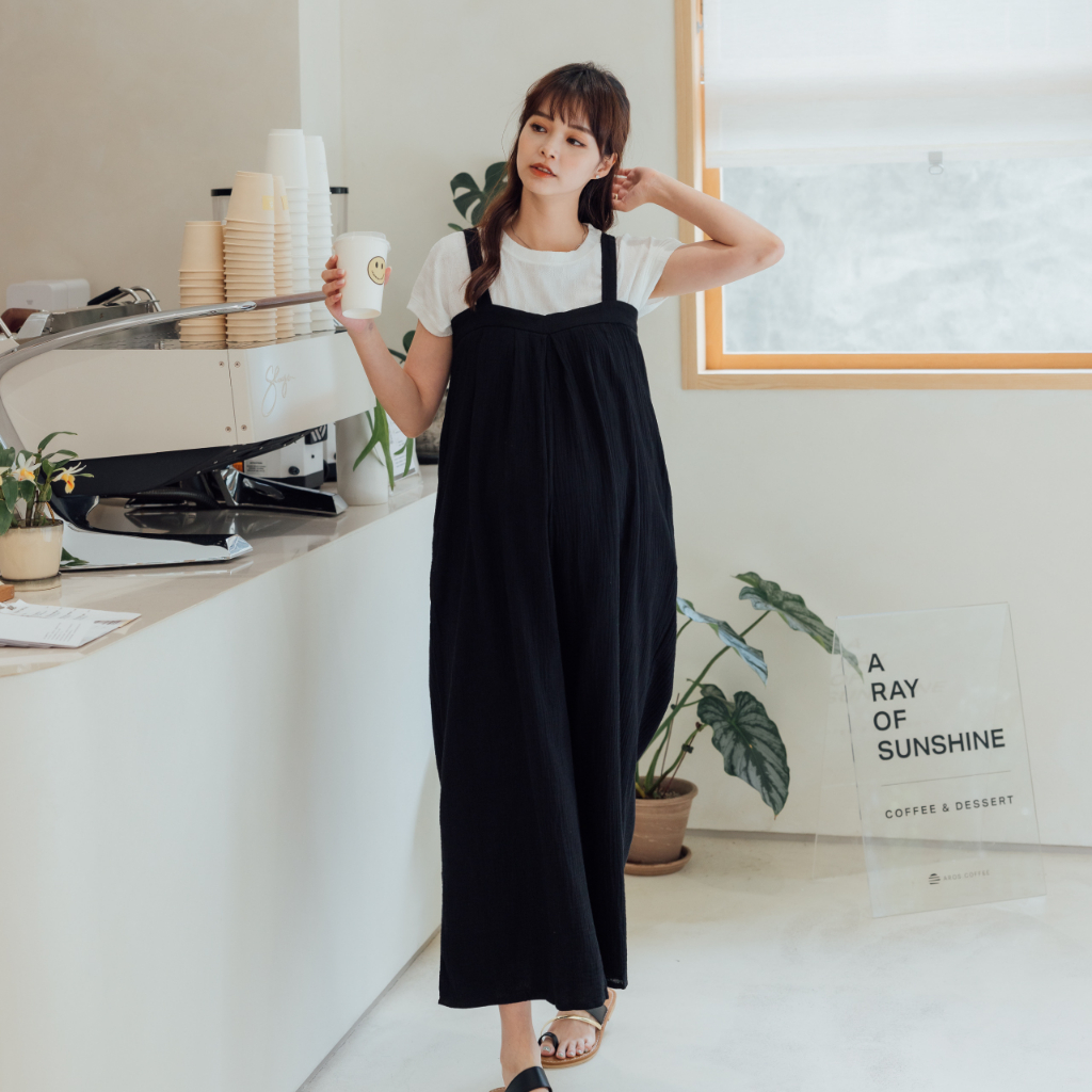 Mamamia孕婦裝 日系棉麻吊帶寬褲 吊帶褲 吊帶寬褲 棉麻 孕婦褲 孕婦裝 長袖 短袖 [A1887]黑|杏灰Maternity BottomsMamamia孕婦裝