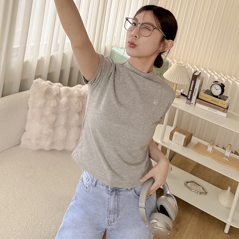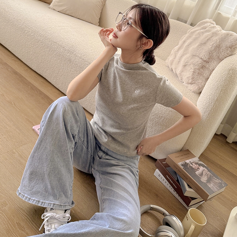 【HARPER】品牌自訂微立領刺繡磨毛上衣 | 現貨 短版上衣 磨毛 短版【CLF12604J】灰,L|灰,XL|白,L|黑,XL|灰,M|紫,M|紫,L|紫,S|紫,XL|黑,S|黑,M|白,S|白,M|灰,S|黑,L|白,XLT-shirtsHARPER