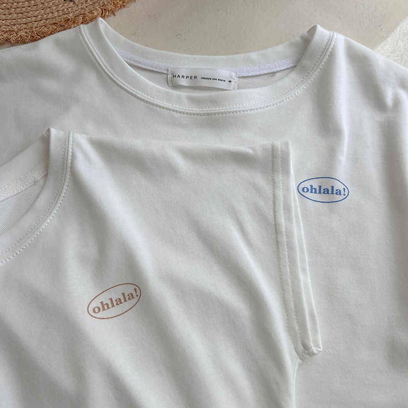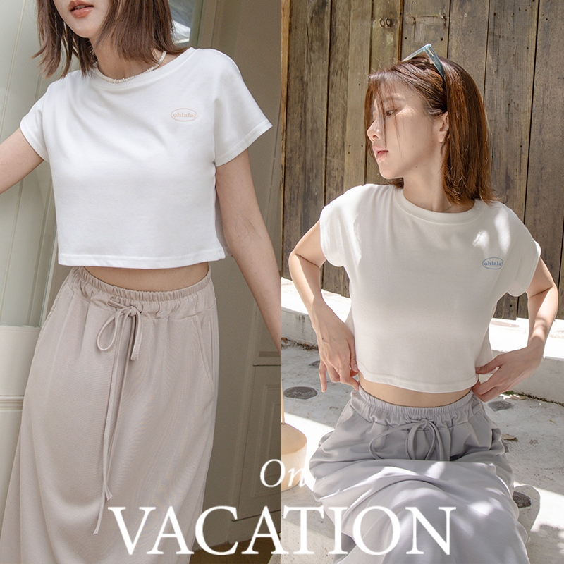 【HARPER】自訂ohlala!短版T恤 |現貨 短版 T恤 短袖 上衣【CLF10833H】奶茶,L~XL|藍,S~M|藍,L~XL|奶茶,S~MT-shirtsHARPER