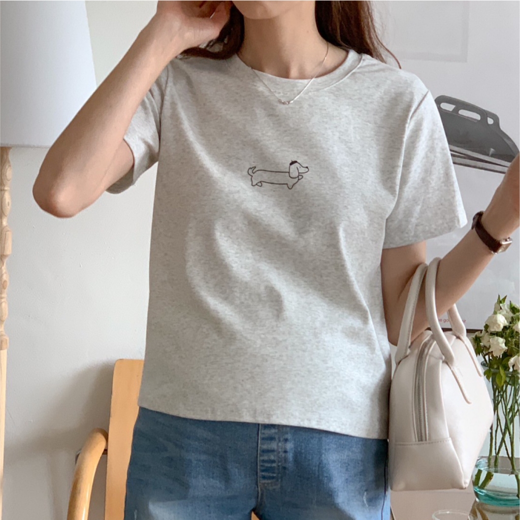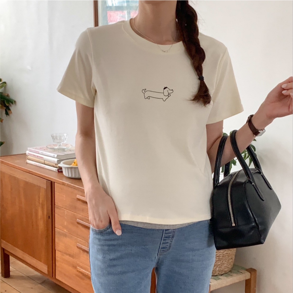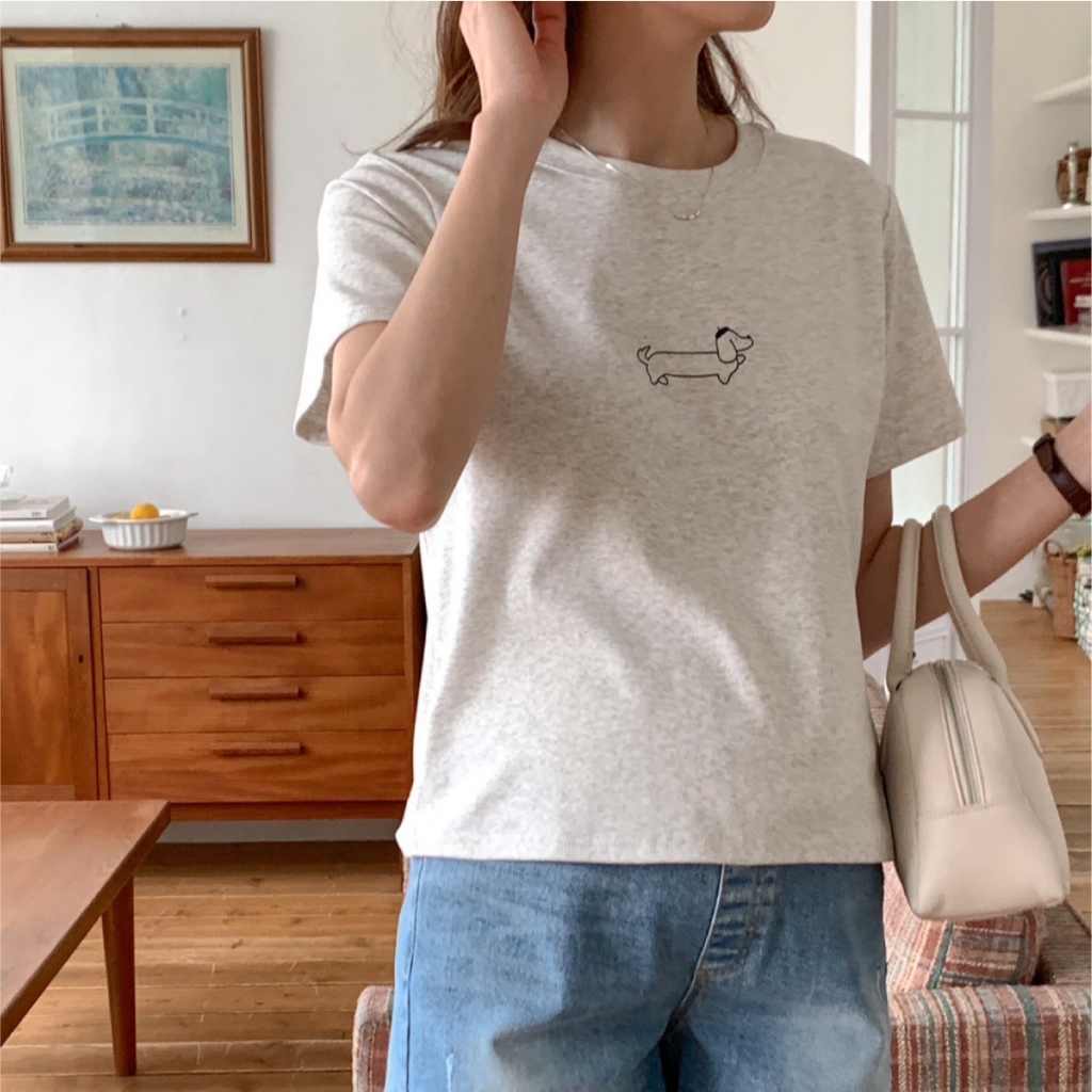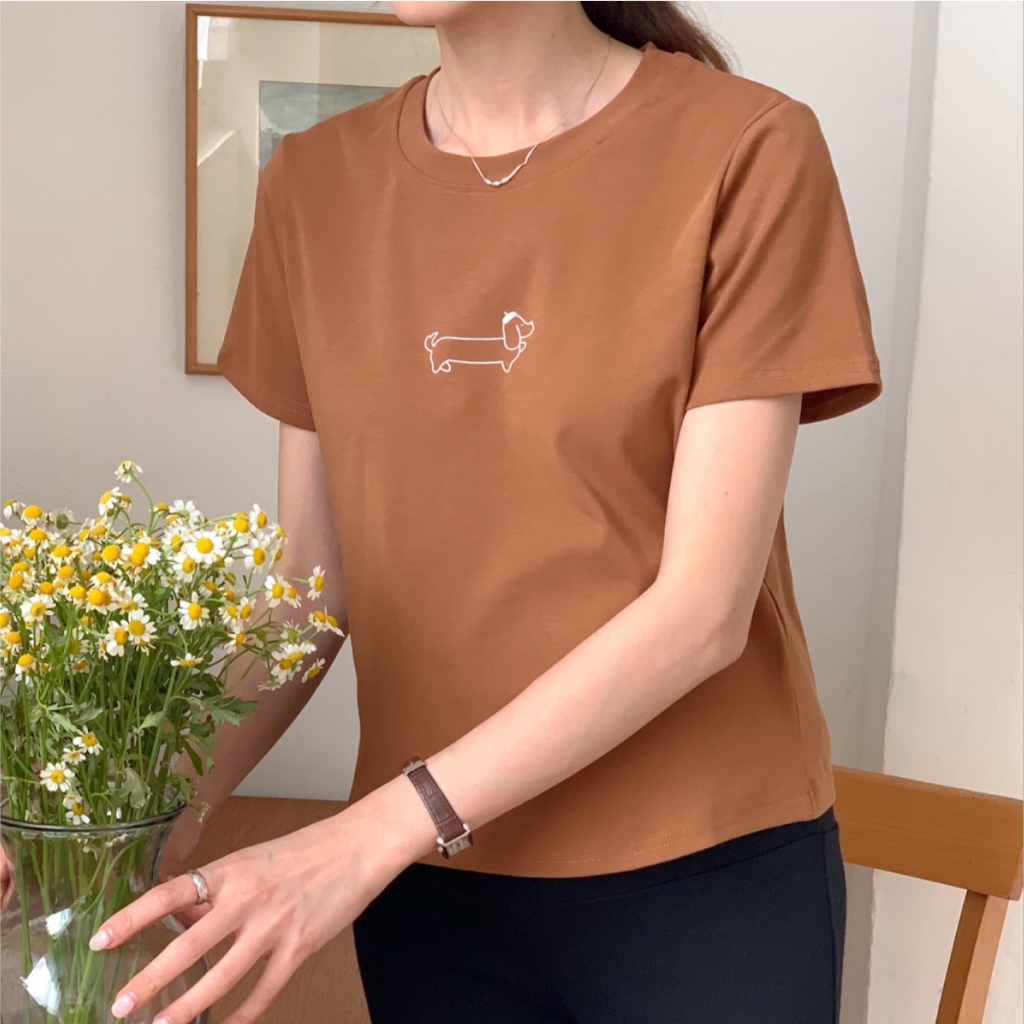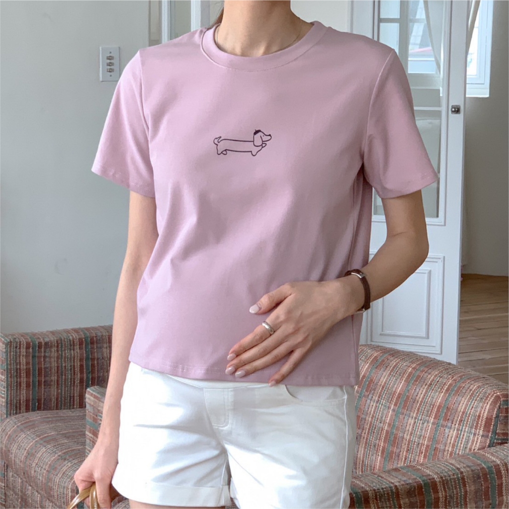 Mamamia孕婦裝 臘腸狗狗舒適柔棉Tee 孕婦裝 短袖 孕婦上衣 寬T 印花上衣 [C3201]粉紫|灰|杏|咖啡Maternity TopsMamamia孕婦裝