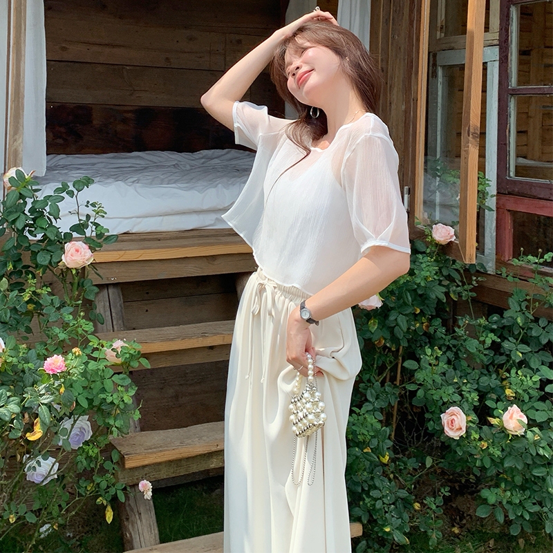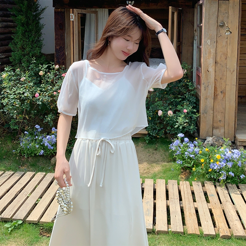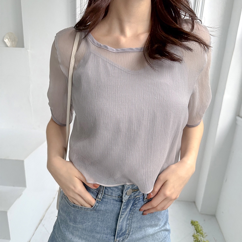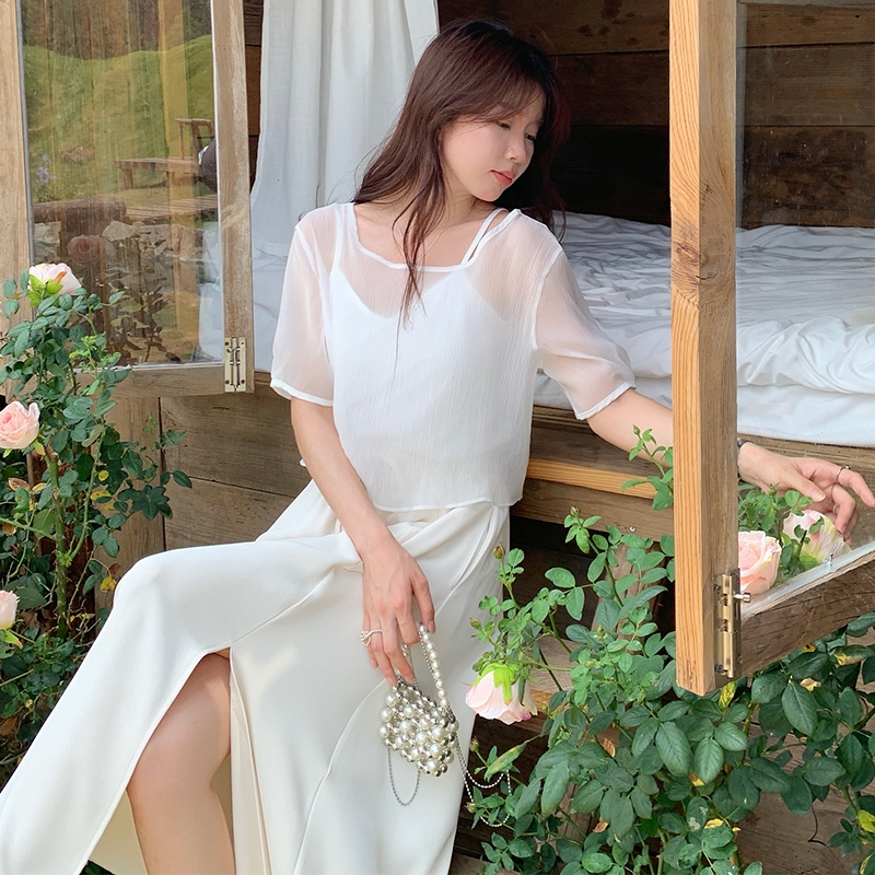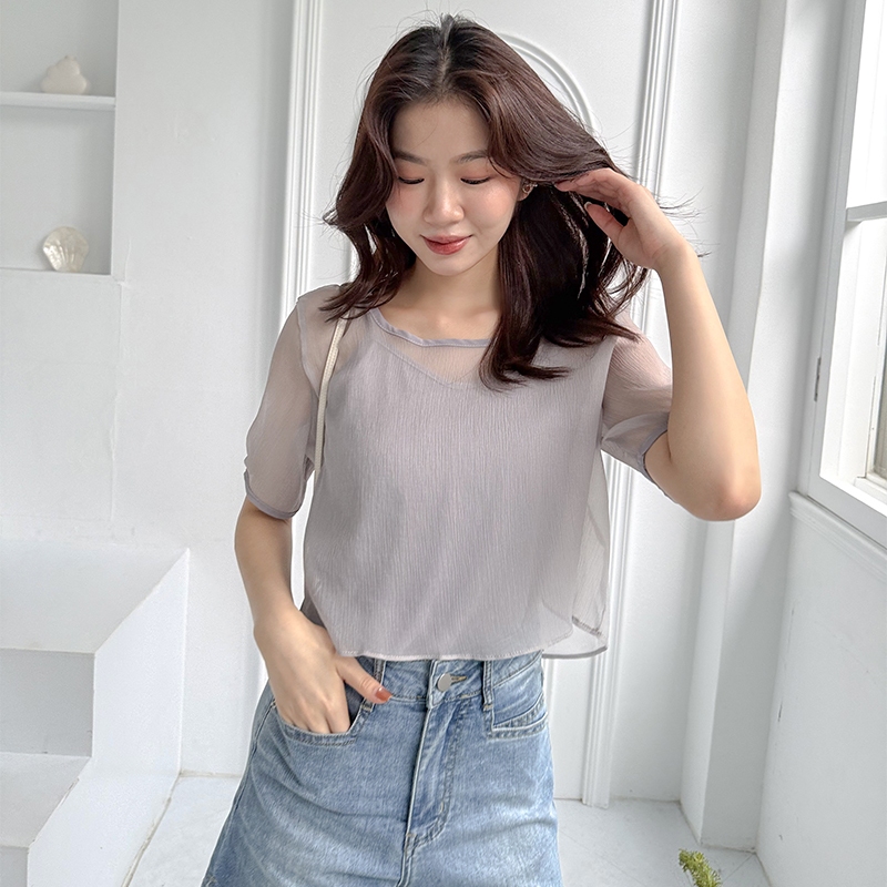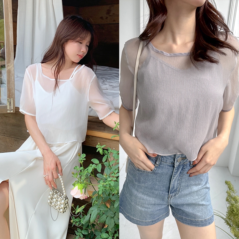 【HARPER】兩件式雙層透紗上衣 | 現貨 兩件式 短袖上衣 婚禮 透紗【CLC44426J】白,F|灰,FIndividual SetsHARPER