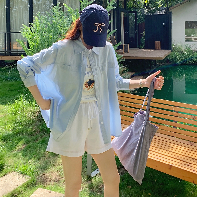 【HARPER】品牌自訂柔霧質感抽繩襯衫 | 現貨 長袖上衣 襯衫【CLB45330J】奶杏,F|藍,FShirts & BlousesHARPER