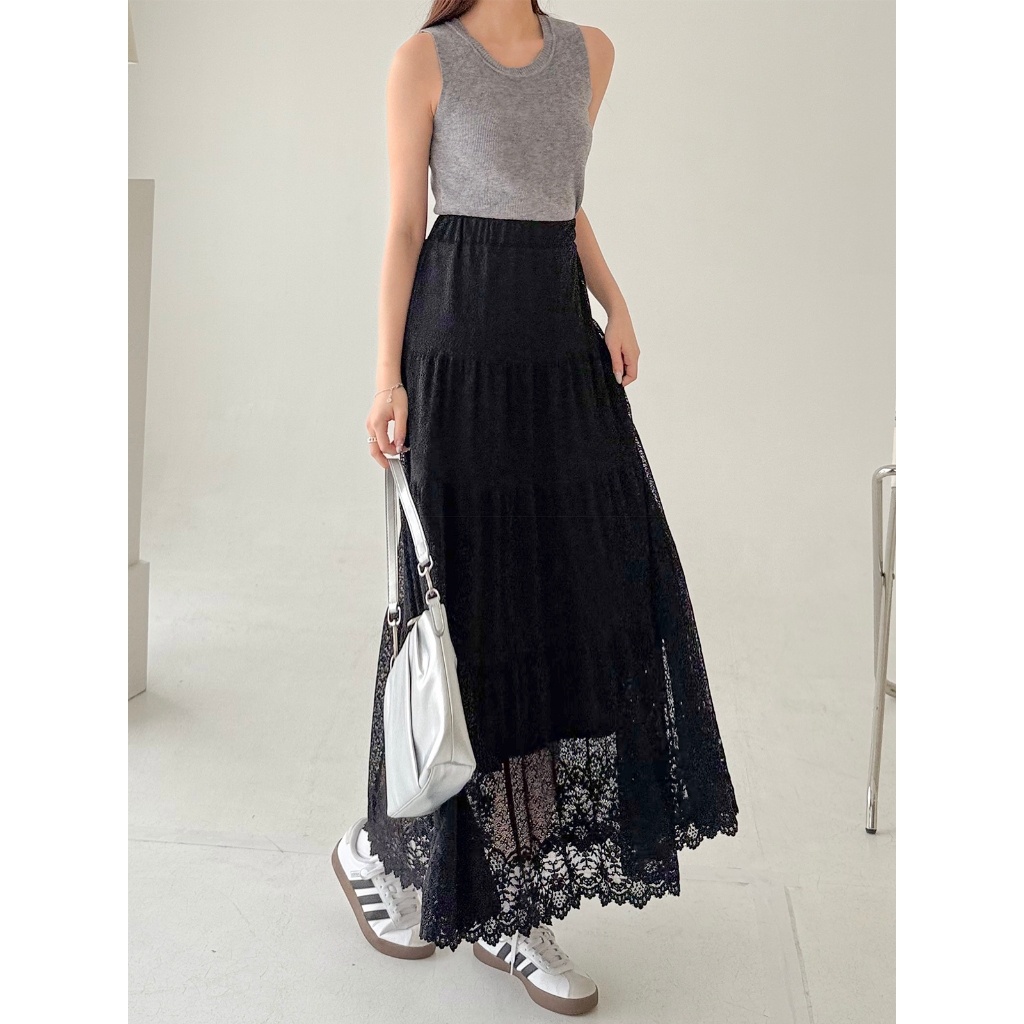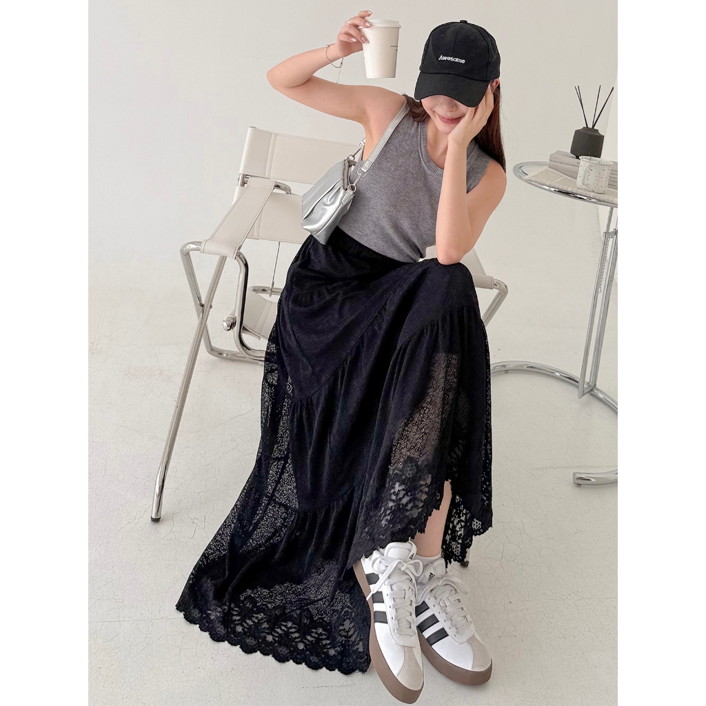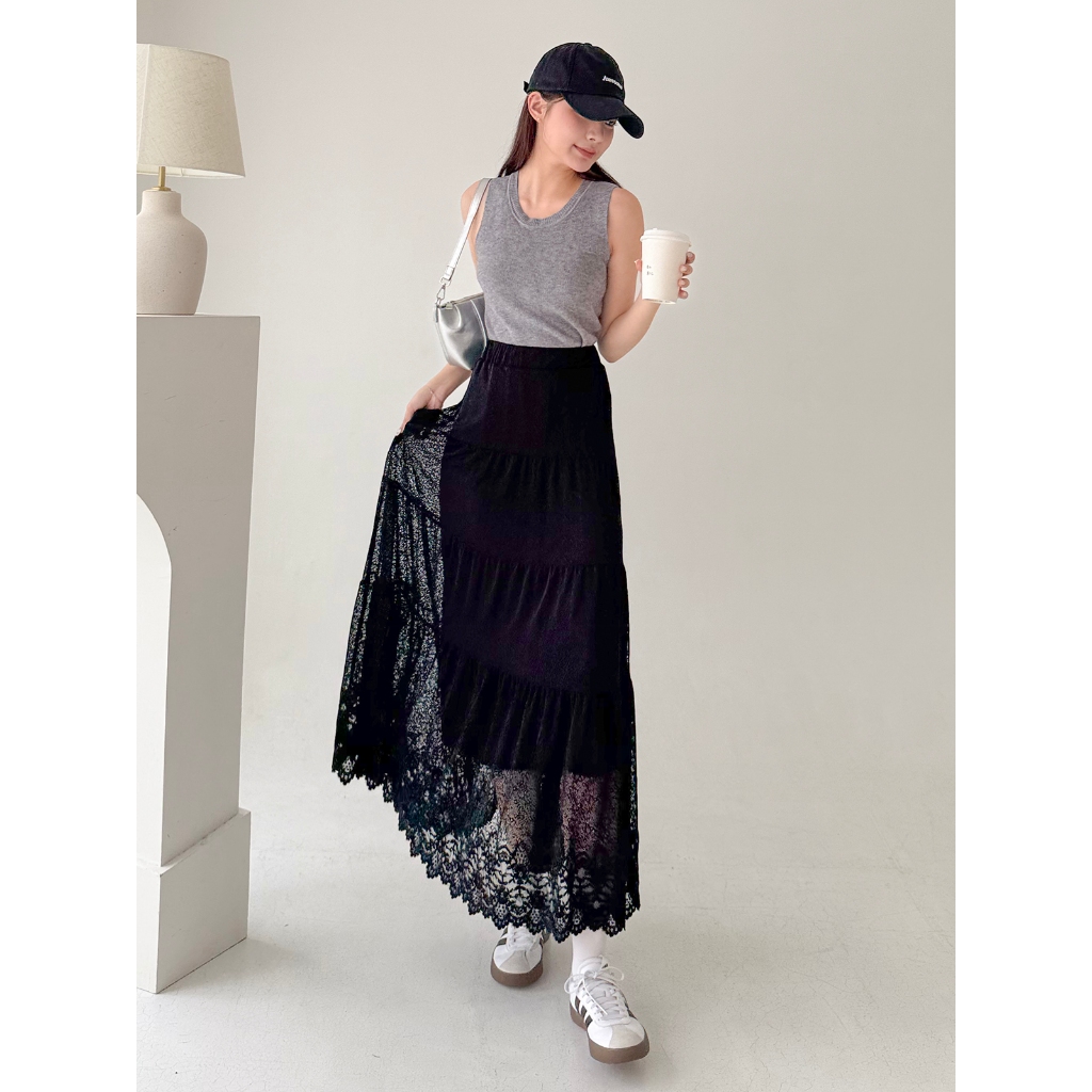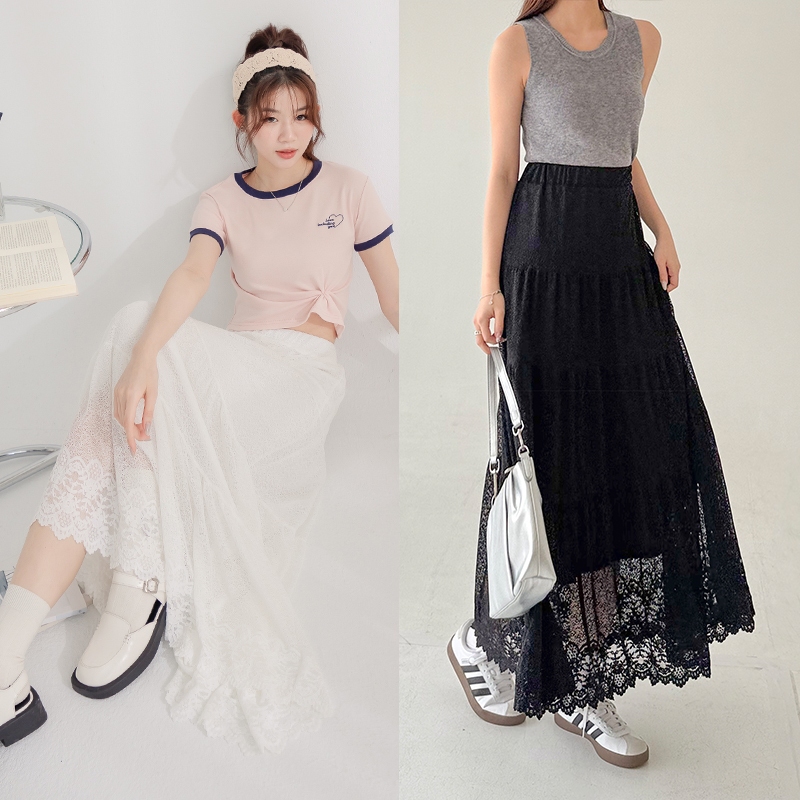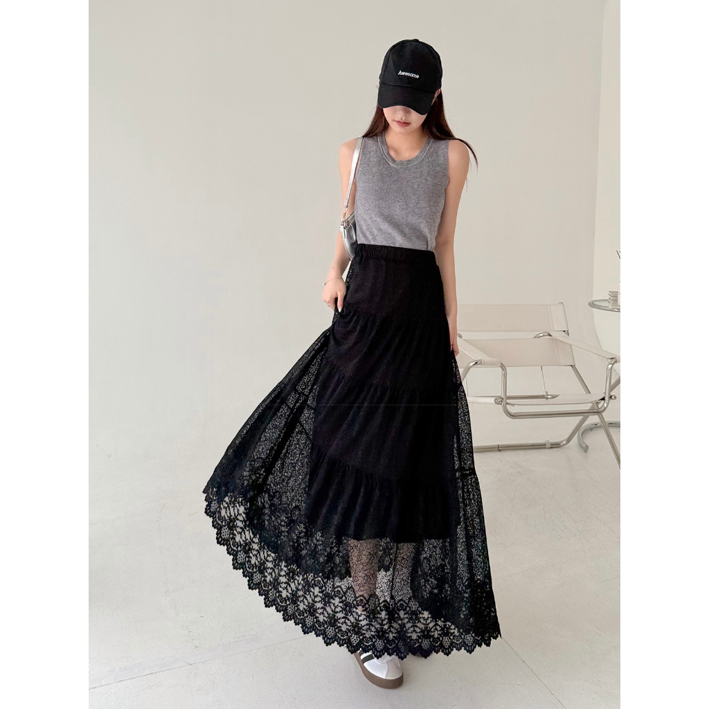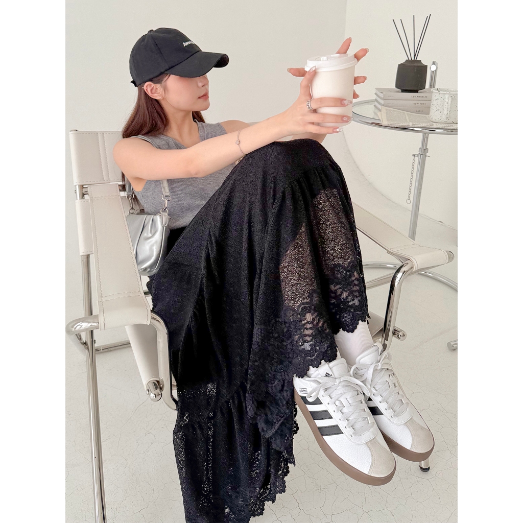 【HARPER】緹花蕾絲蛋糕長裙 有內裏 | 現貨 中長裙 裙子 蛋糕裙 蕾絲 婚禮【SKE29611J】白,F|黑,FHARPER