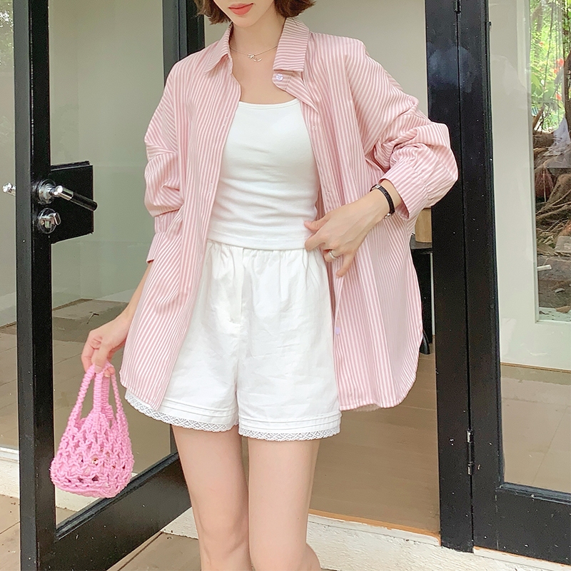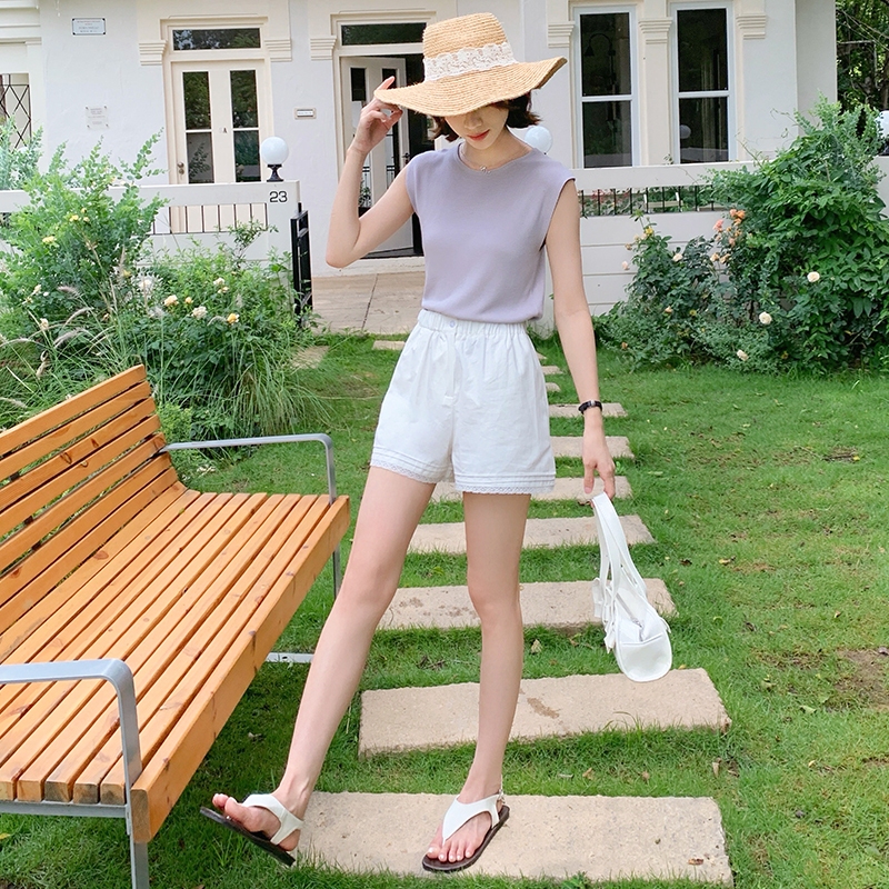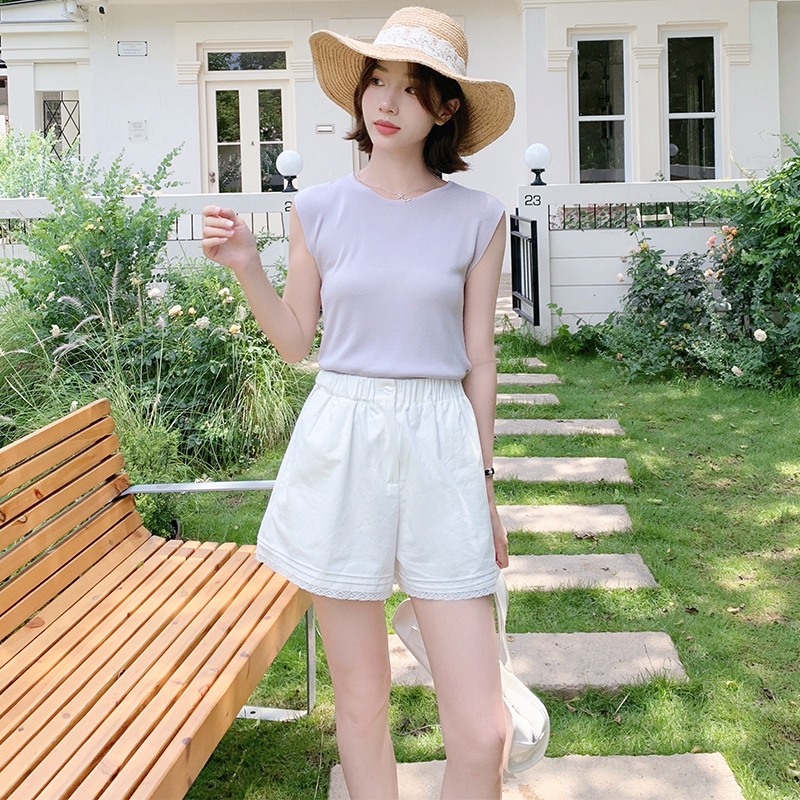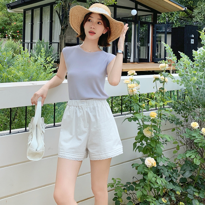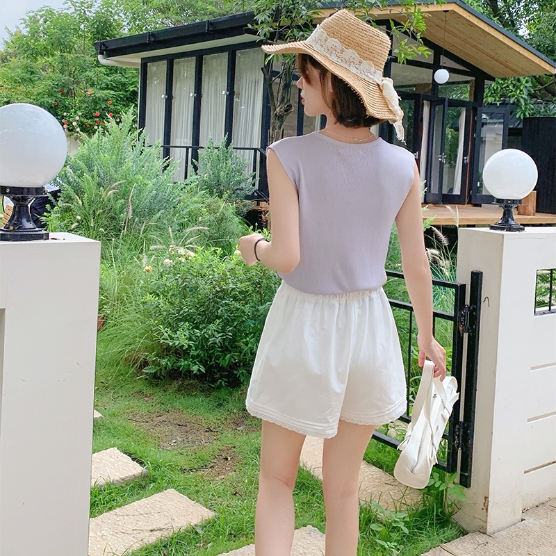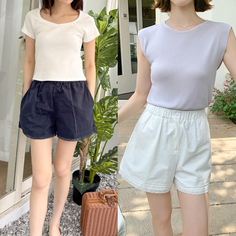 【HARPER】蕾絲拼接鬆緊腰短褲 | 現貨 短褲 褲子 蕾絲 白褲 休閒褲子【PNE39423J】白,F|深藍,FShortsHARPER