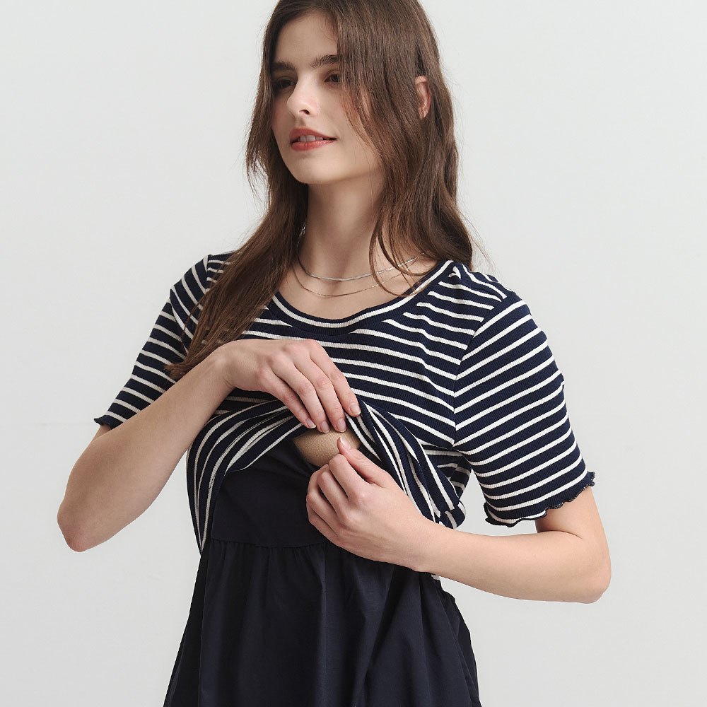 【Mamaway媽媽餵】橫紋拼接假兩件孕哺洋裝淺灰,S|淺灰,M|淺灰,L|深藍,S|深藍,L|深藍,XL|淺灰,XL|深藍,M|駝色,S|駝色,L|駝色,M|駝色,XLMaternity DressesMamaway 媽媽餵 母嬰品牌領導者