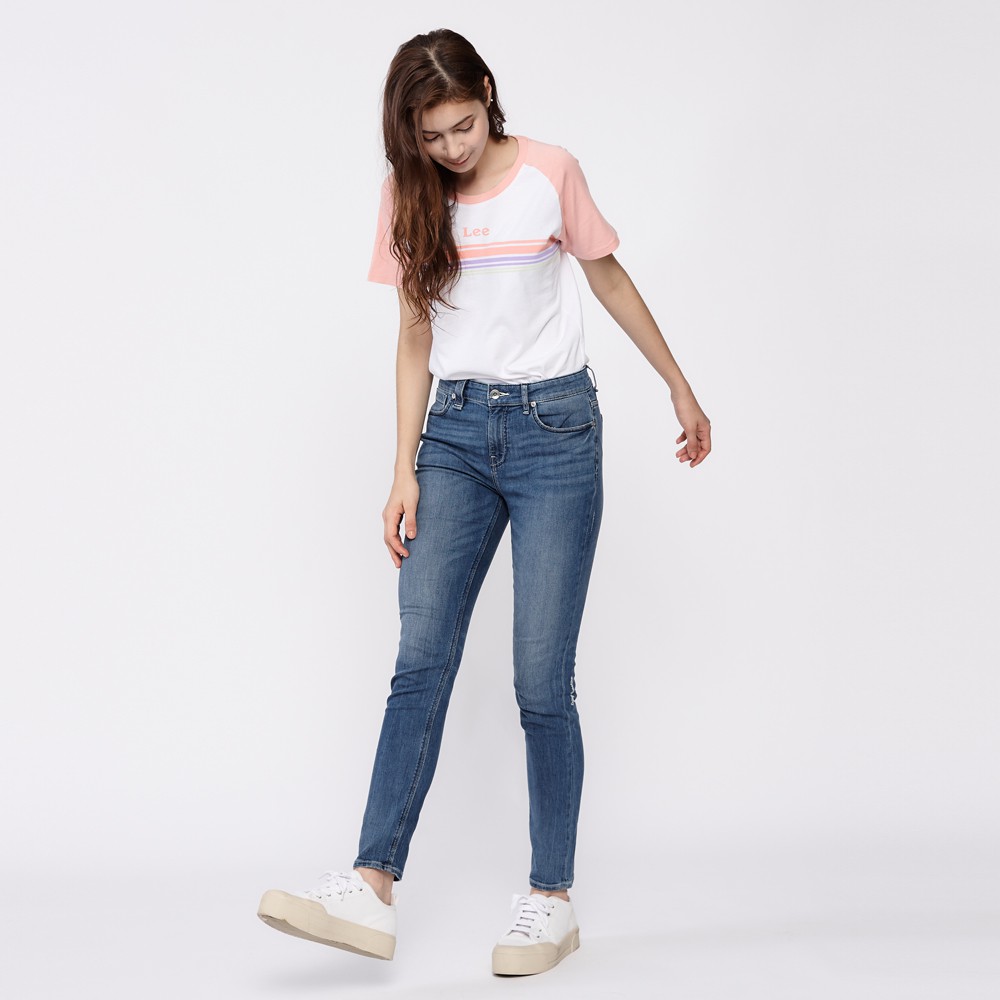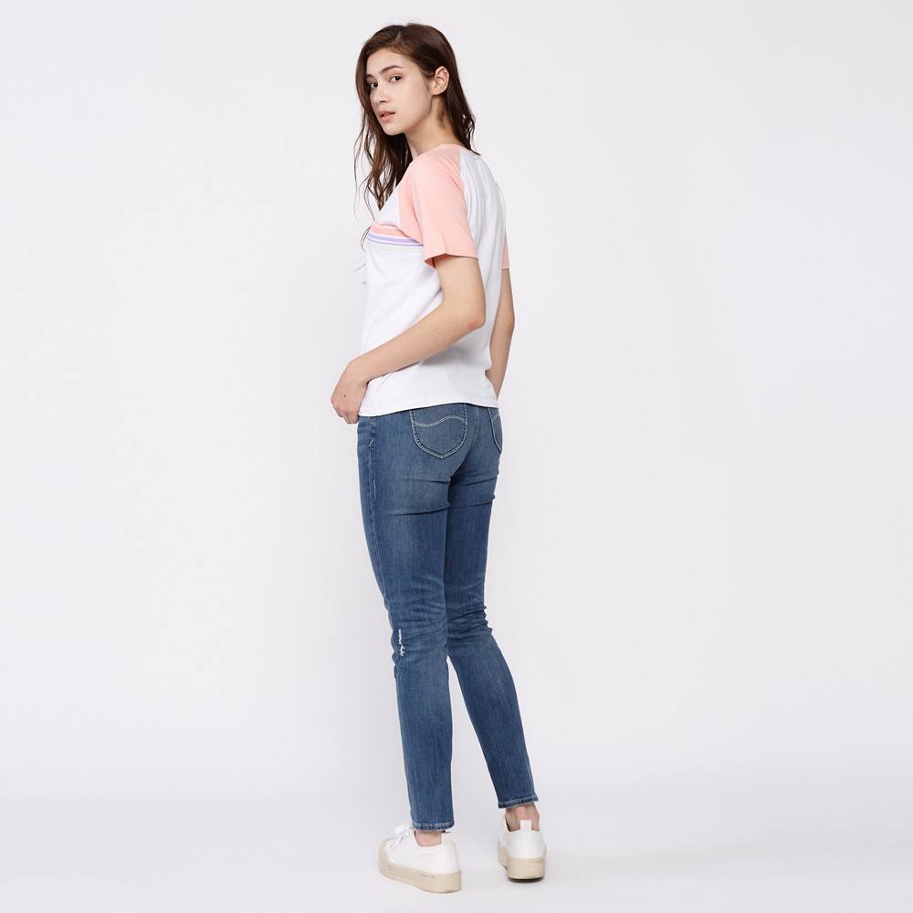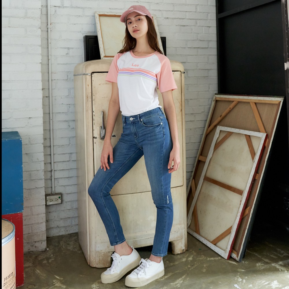 Lee 小Logo粉紅色拉克蘭袖短袖T恤 女 白 Modern LL2001723XWS|M|L|XLT-shirtsLee Jeans 品牌旗艦店