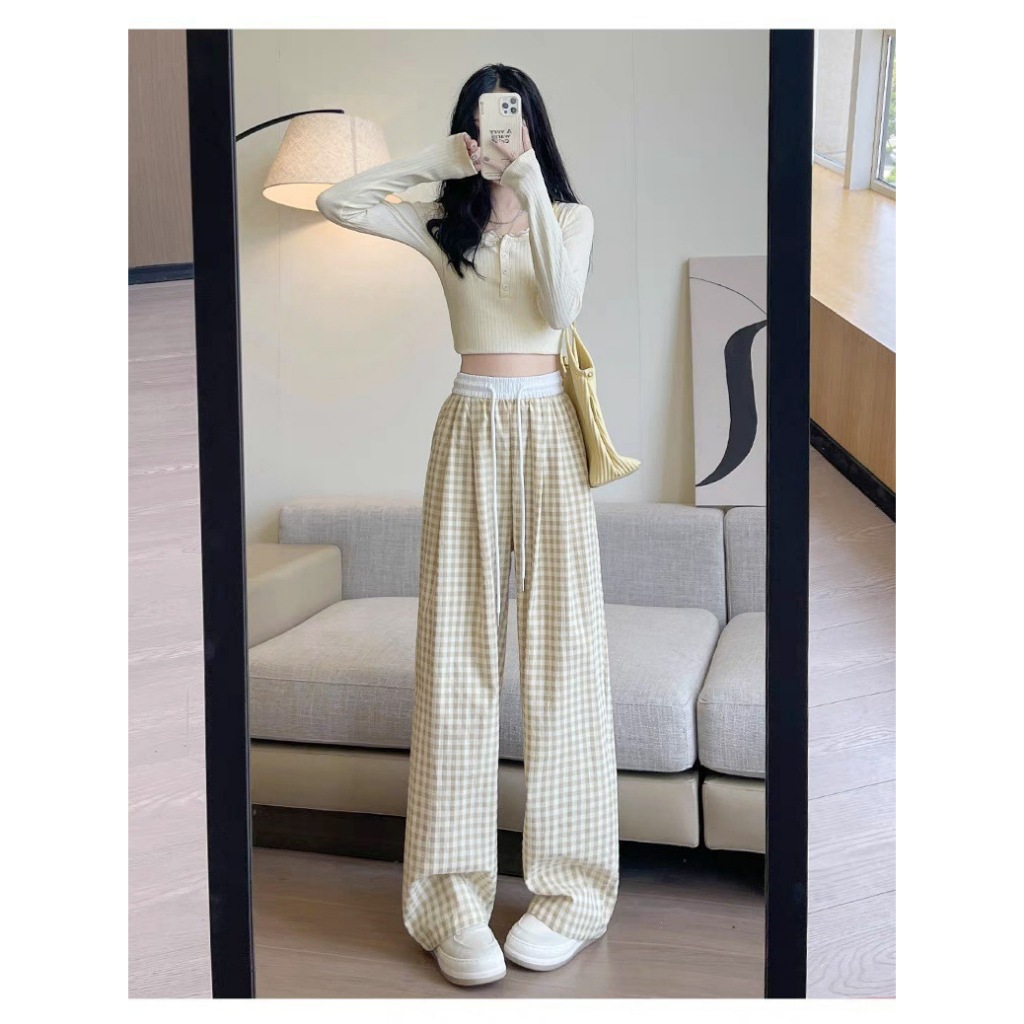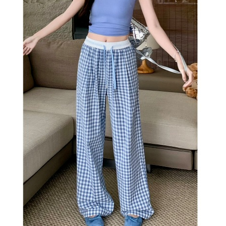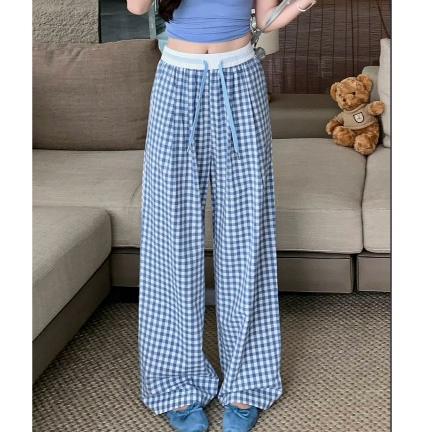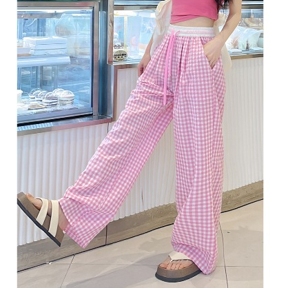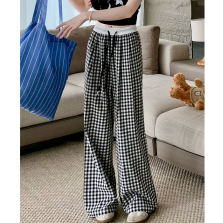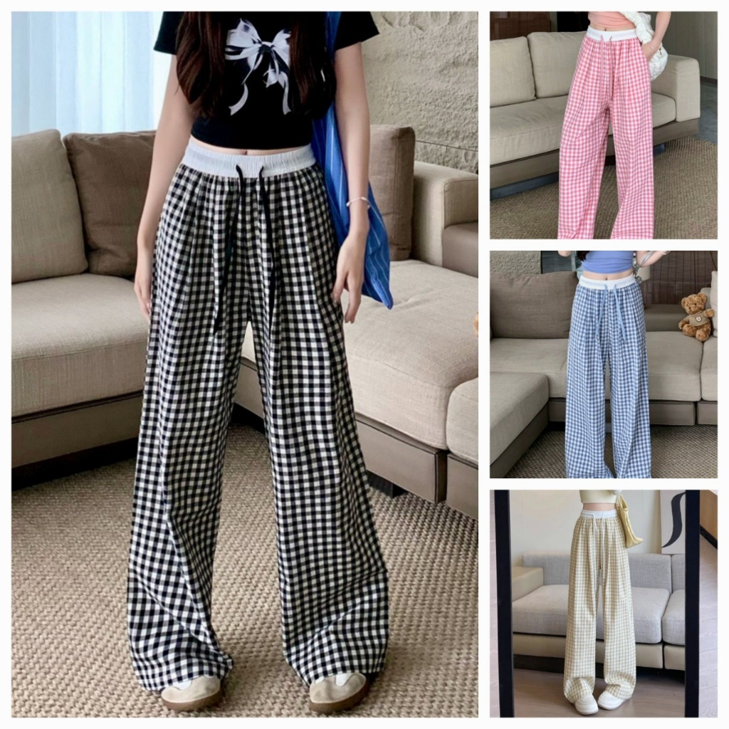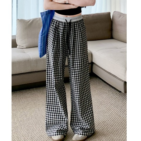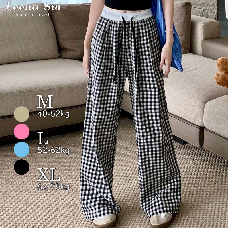 輕便褲 口袋薄款設計感慵懶褲子寬鬆休閒直筒垂感拖地褲撞色格紋寬褲 050666黑,M|黑,L|黑,XL|藍,M|藍,L|藍,XL|粉紅,M|粉紅,L|粉紅,XL|淺卡其,M|淺卡其,L|淺卡其,XLOthersLeenaSui ~台灣賣家 隔日到貨
