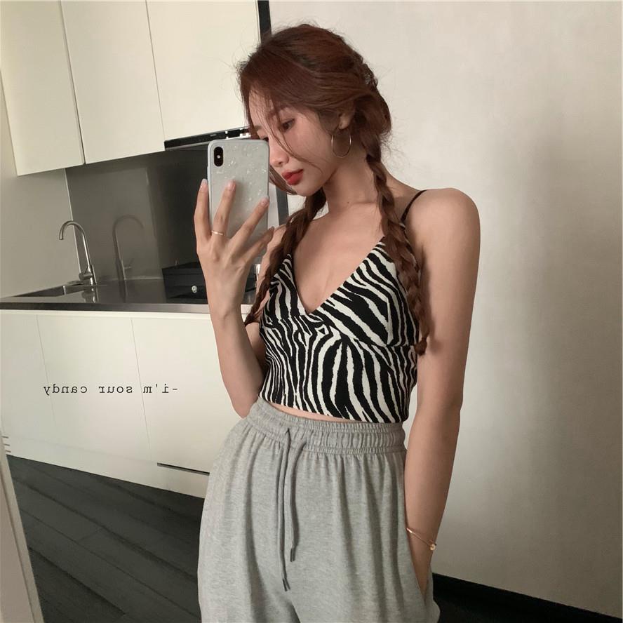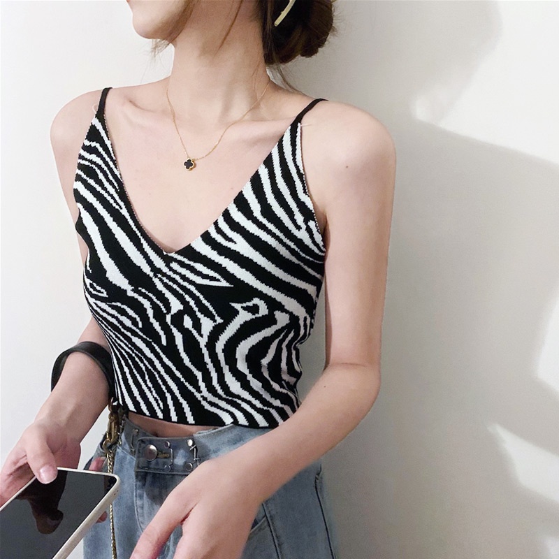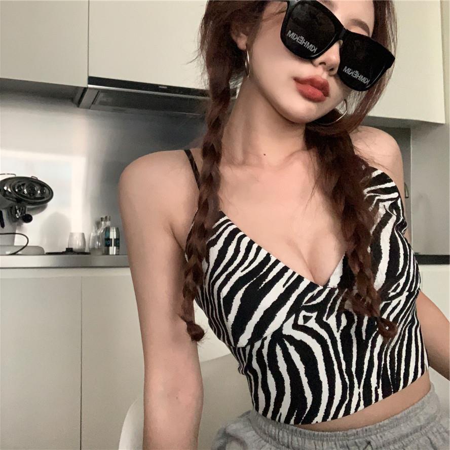 細肩帶背心 短版上衣 背心小可愛 斑馬紋吊帶裹胸防走光小背心性感內搭短款上衣 022546
