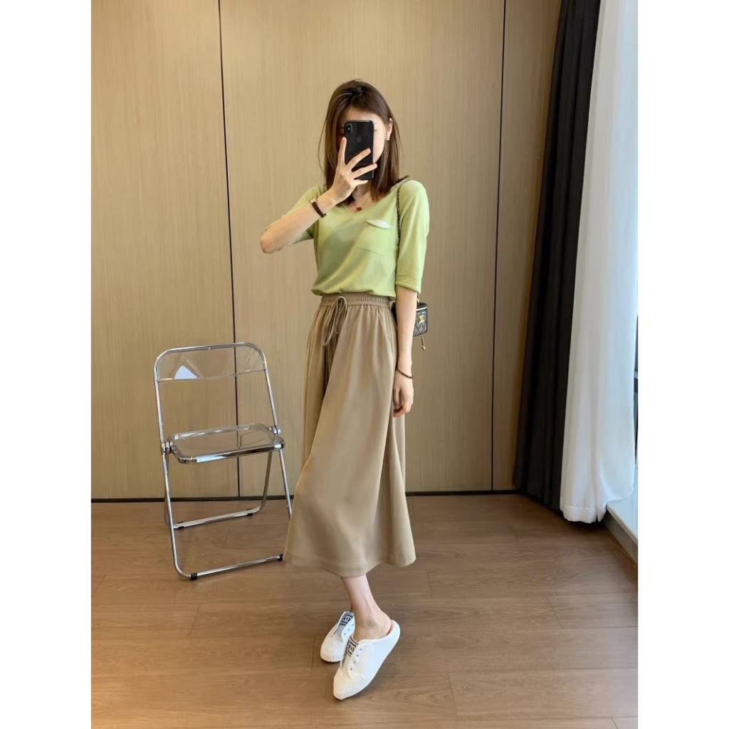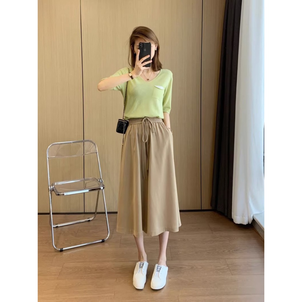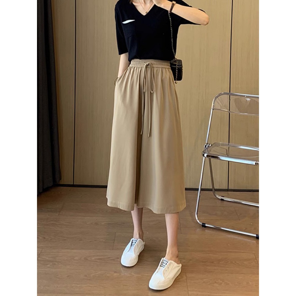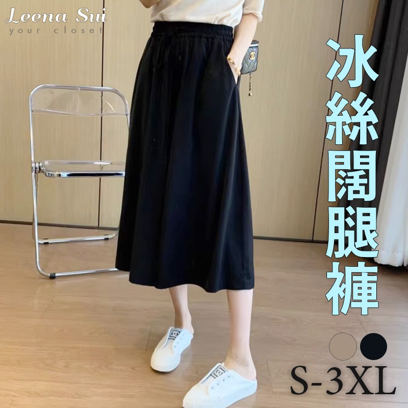冰絲褲裙 七分寬褲 薄款大碼高腰梨形身材顯瘦寬鬆垂感抽繩七分褲裙 052722黑,【均碼】S-L 適穿|黑,【大碼】XL-3XL 適穿|卡其,【均碼】S-L 適穿|卡其,【大碼】XL-3XL 適穿SkortsLeenaSui ~台灣賣家 隔日到貨