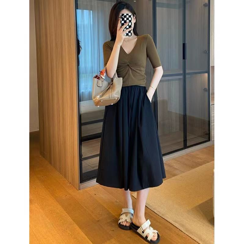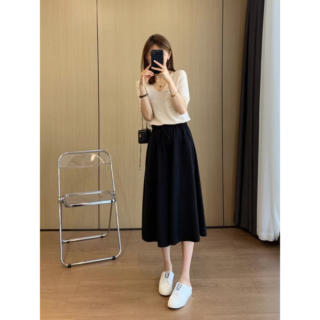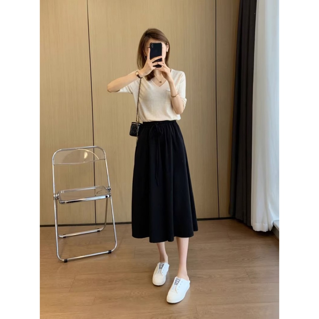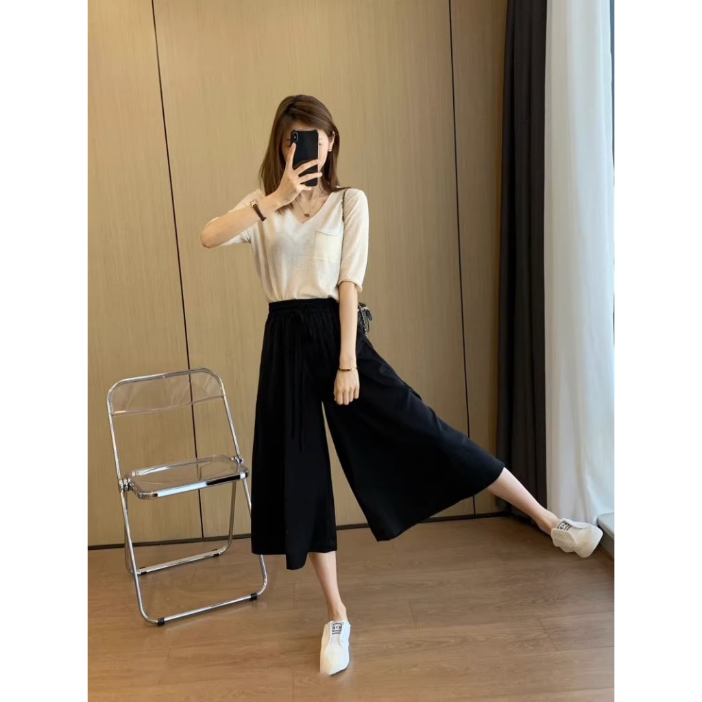 冰絲褲裙 七分寬褲 薄款大碼高腰梨形身材顯瘦寬鬆垂感抽繩七分褲裙 052722黑,【均碼】S-L 適穿|黑,【大碼】XL-3XL 適穿|卡其,【均碼】S-L 適穿|卡其,【大碼】XL-3XL 適穿SkortsLeenaSui ~台灣賣家 隔日到貨