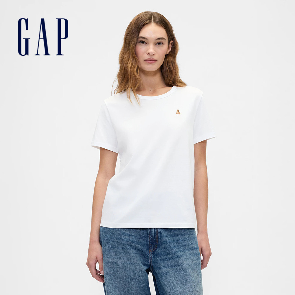 Gap 女裝 純棉小熊刺繡圓領短袖T恤-白色(821817)XS|S|M|L|XL|XXST-shirtsGap官方旗艦店