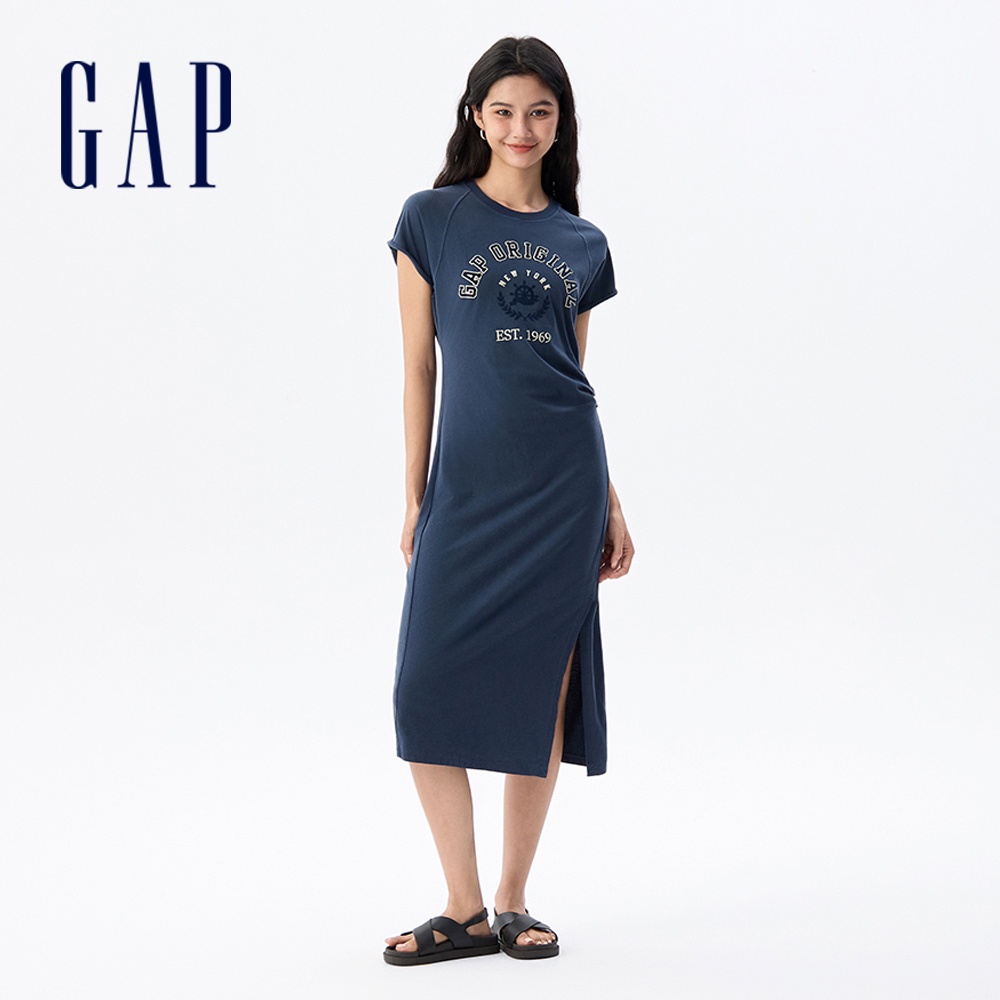Gap 女裝 Logo純棉印花圓領短袖洋裝-藍色(765950)L|XL|XS|S|MGap官方旗艦店