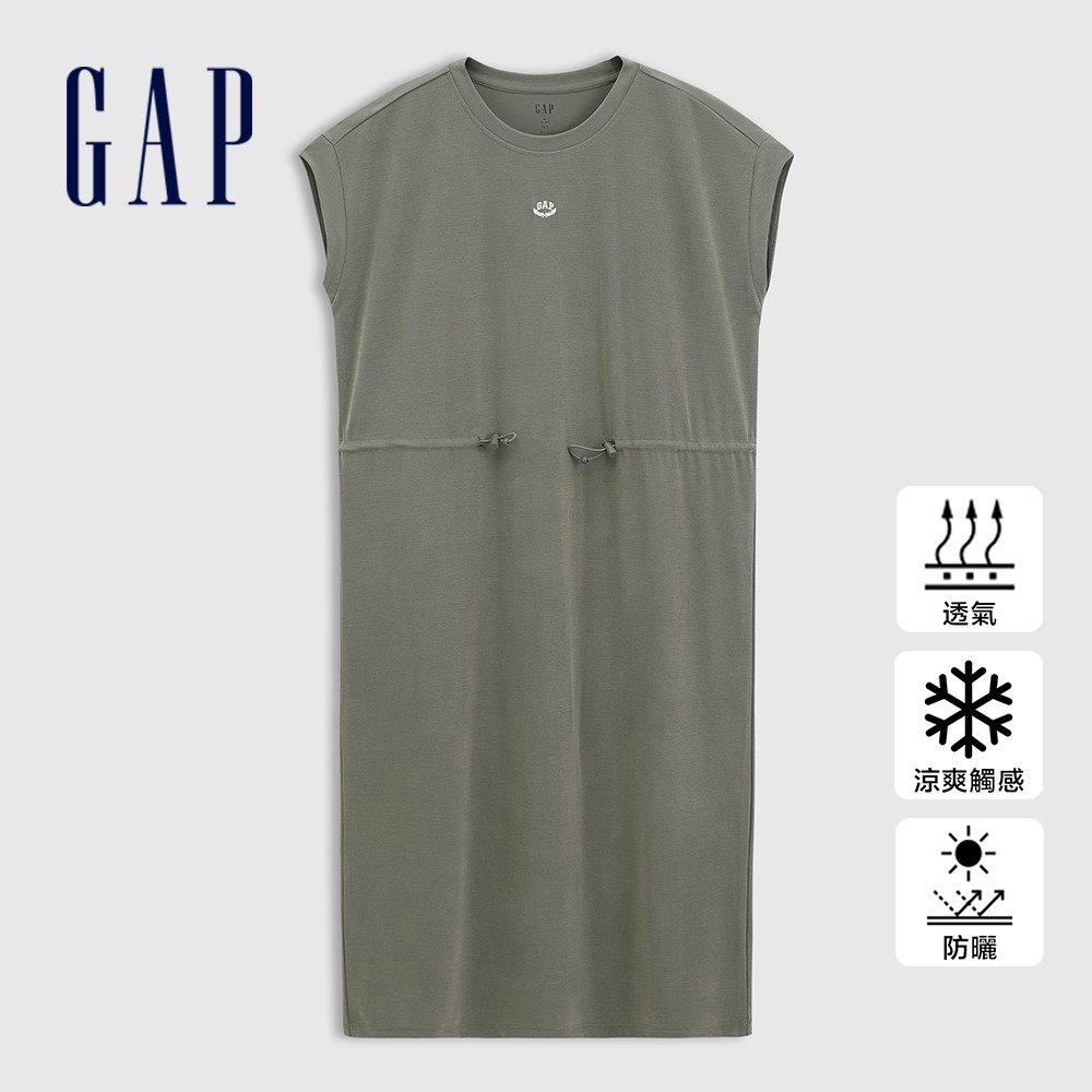 Gap 女裝 Logo刺繡防曬圓領無袖洋裝-軍綠色(764903)XS|S|M|L|XLGap官方旗艦店