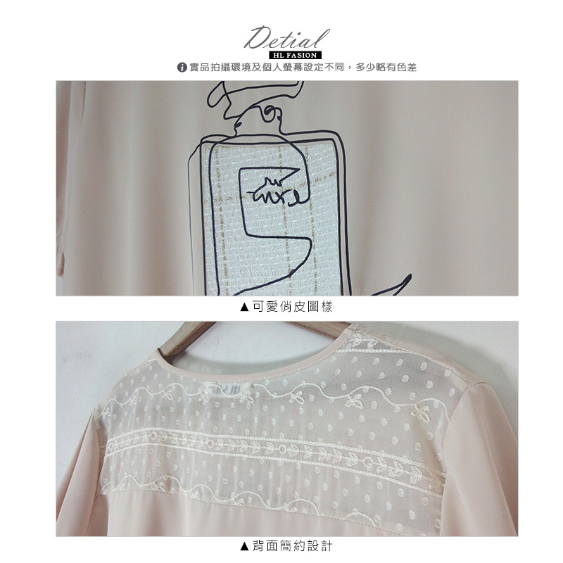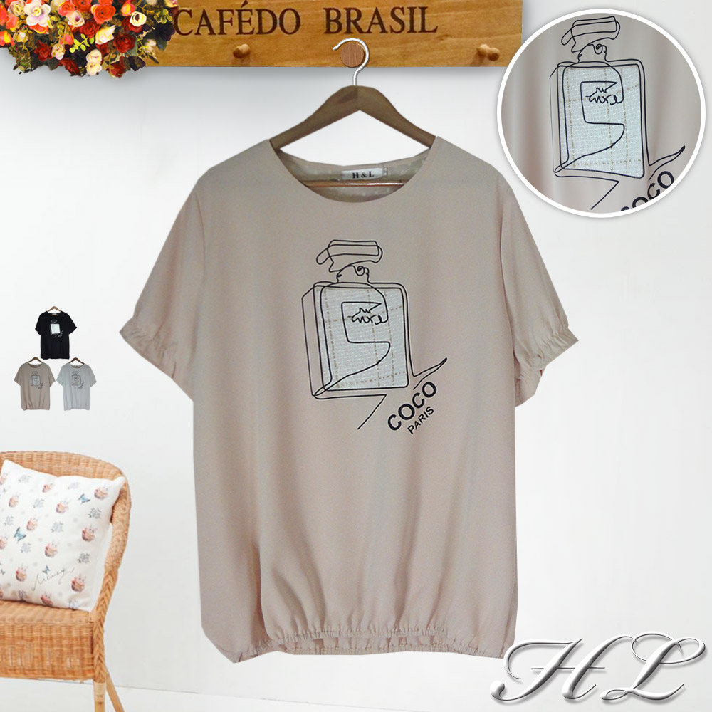 HL中大尺碼【23040045】金絲香水瓶背蕾絲縮擺雪紡短袖上衣 3色46碼黑|50碼白|50碼杏|50碼黑|46碼白|46碼杏T-shirtsHL中大尺碼