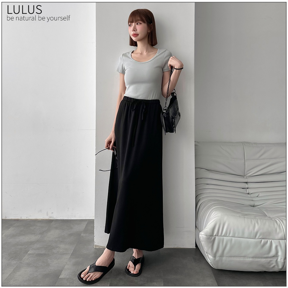 LULUS/腰鬆緊涼涼休閒長裙4色【A05250063】250730灰|深灰|黑|米杏LULUS