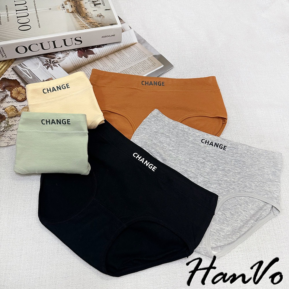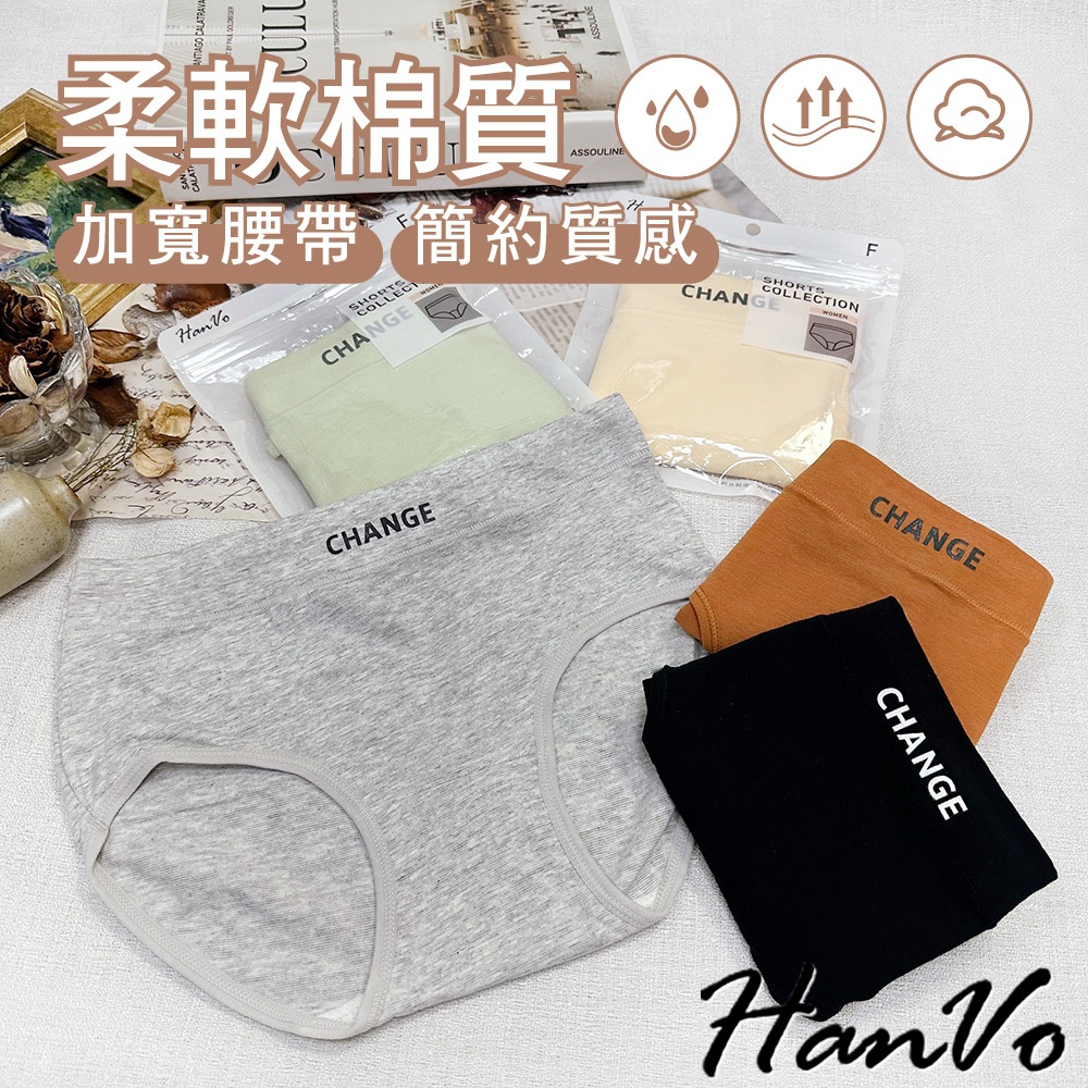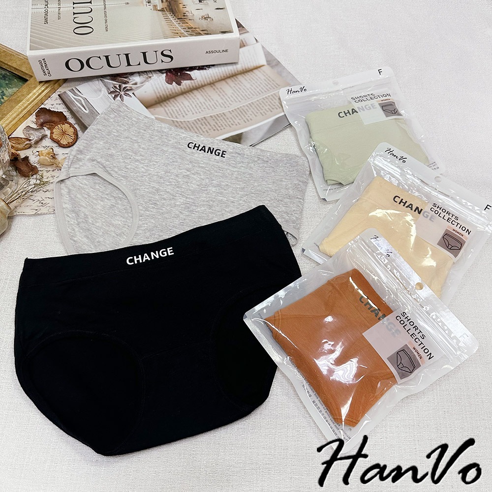 【HanVo】CHANGE字母棉質內褲 獨立包裝 吸濕排汗透氣中腰 透氣內褲 女生內褲 內褲 A11-5280星辰黑|雲彩灰|嫩芽綠|南瓜橘|日光橘|NG福利品(不挑色不退貨)PantiesHanVo Wear Collection