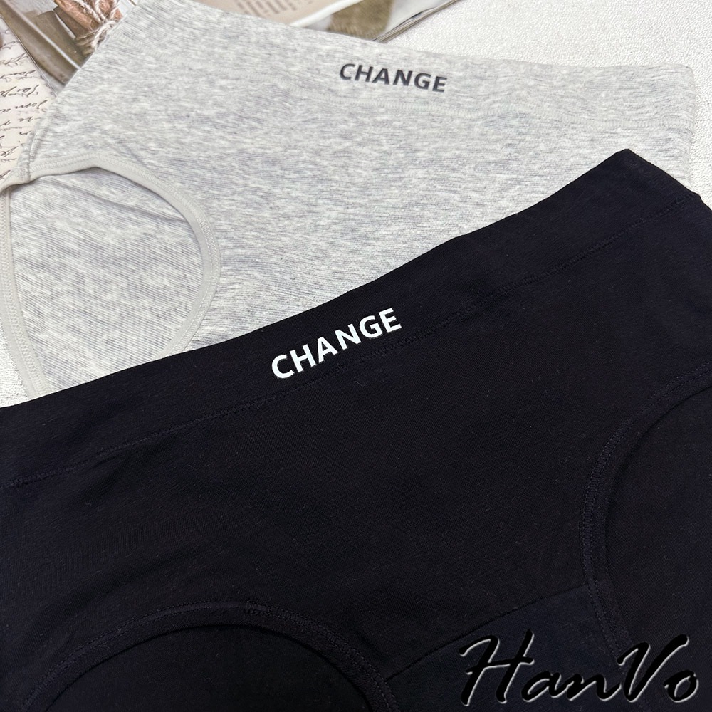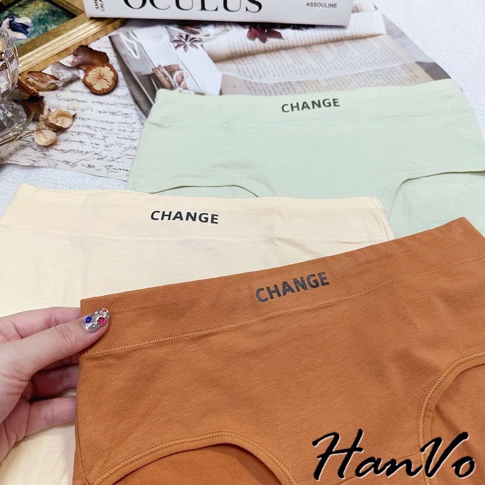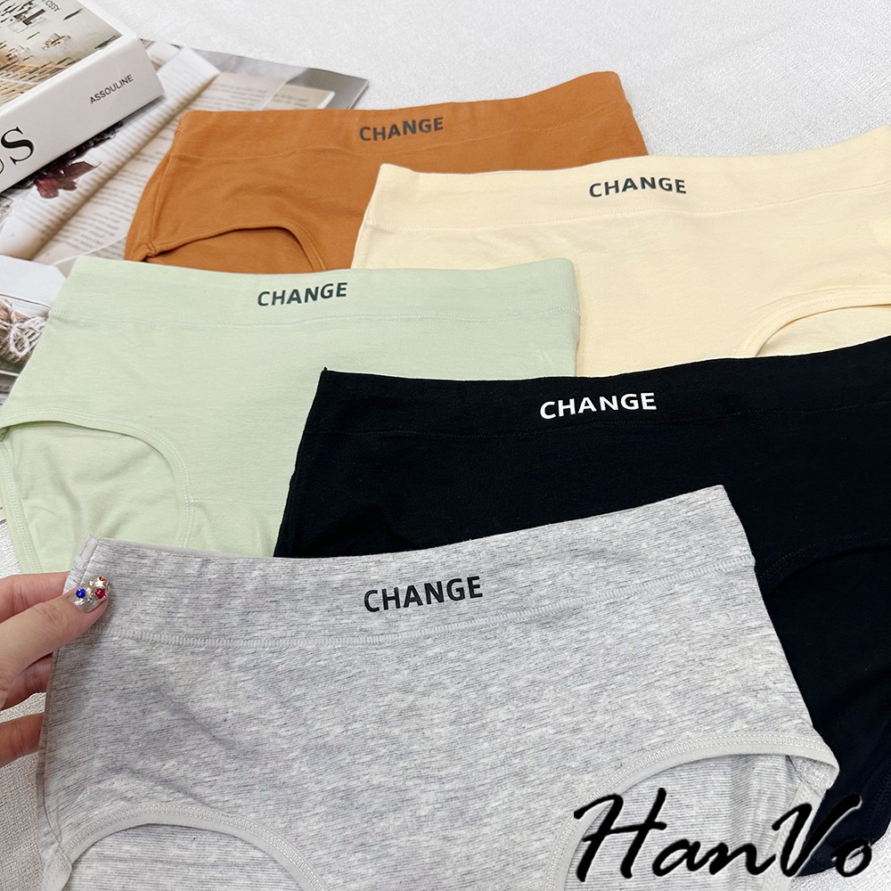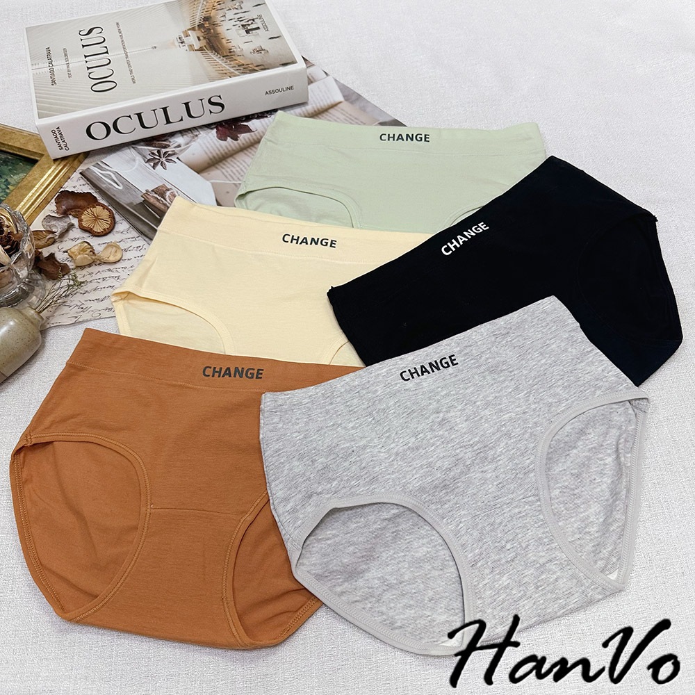 【HanVo】CHANGE字母棉質內褲 獨立包裝 吸濕排汗透氣中腰 透氣內褲 女生內褲 內褲 A11-5280星辰黑|雲彩灰|嫩芽綠|南瓜橘|日光橘|NG福利品(不挑色不退貨)PantiesHanVo Wear Collection