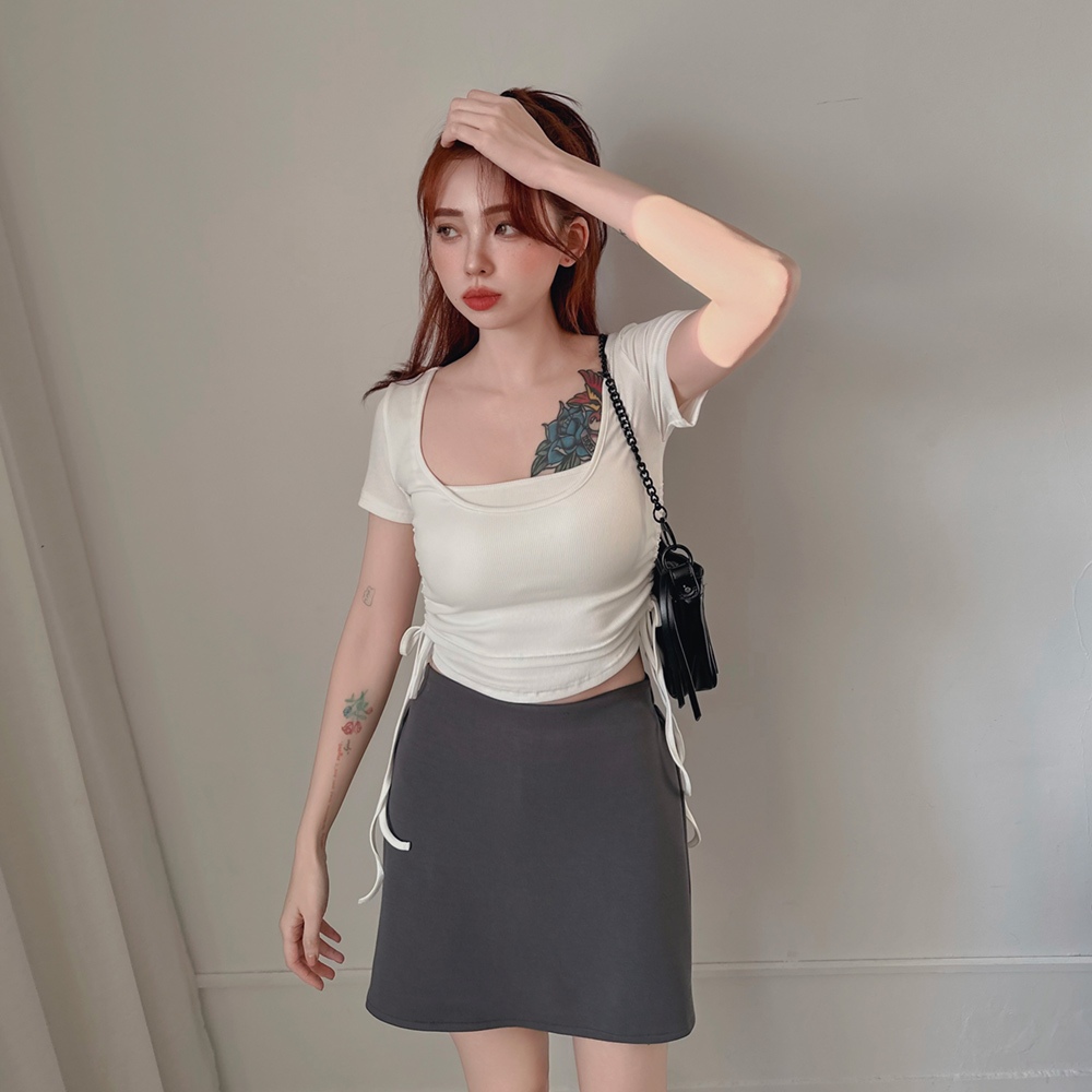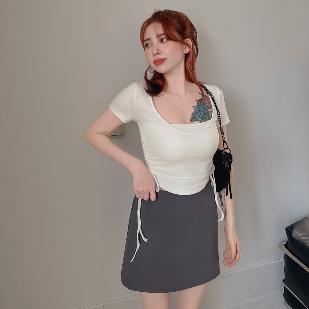 LULUS/休閒A字後鬆緊褲裙4色【A04250005】短裙250206淺灰|黑|花灰|深灰ShortsLULUS