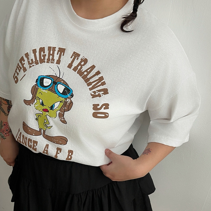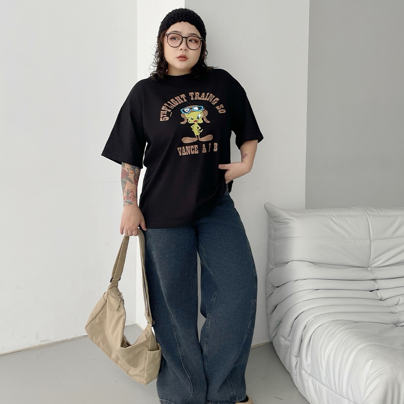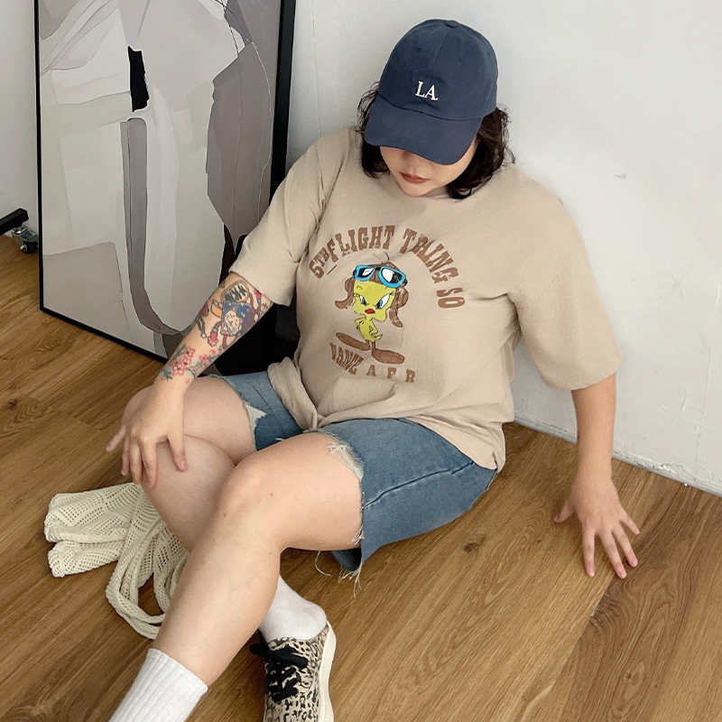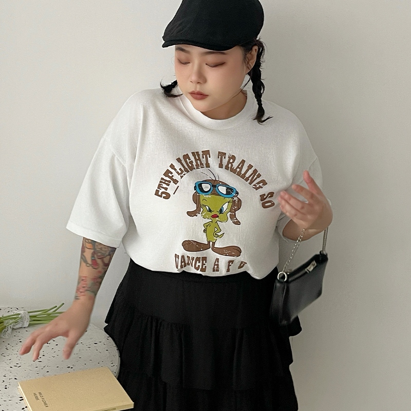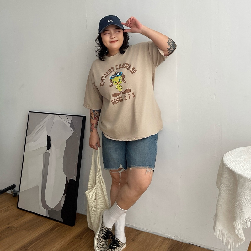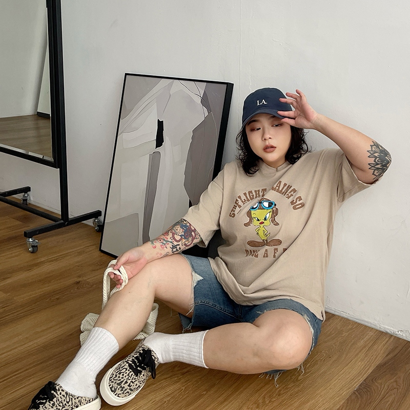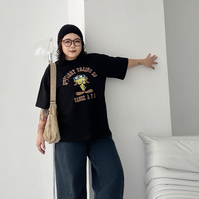 LULUS/PLUS/中大尺碼/韓製/氣噗噗崔滴卡通圖樣寬鬆T恤4色【A01240039】正韓 韓國上衣 男女25041奶茶|黑|白T-shirtsLULUS