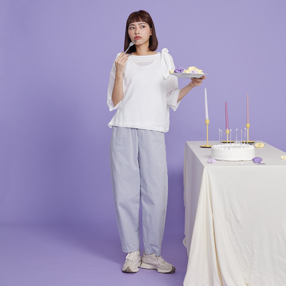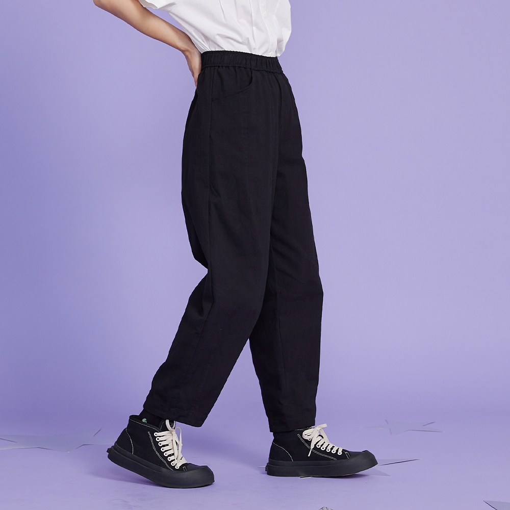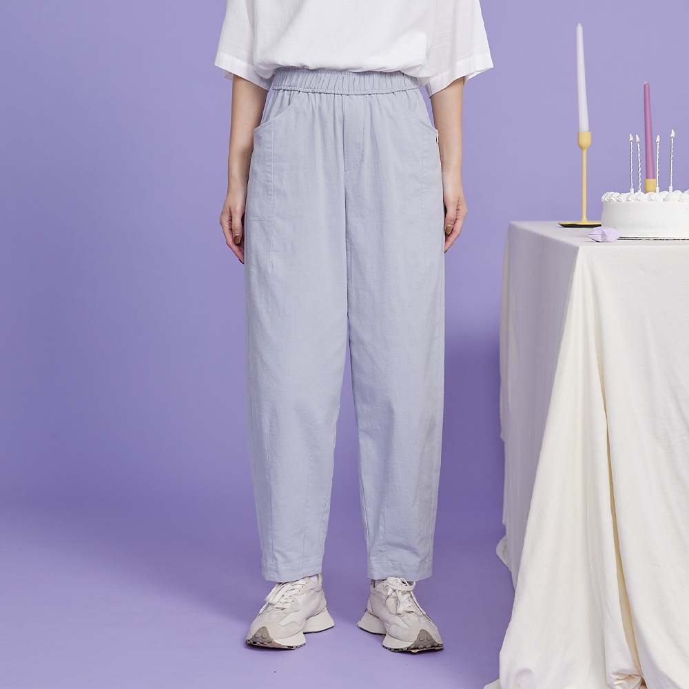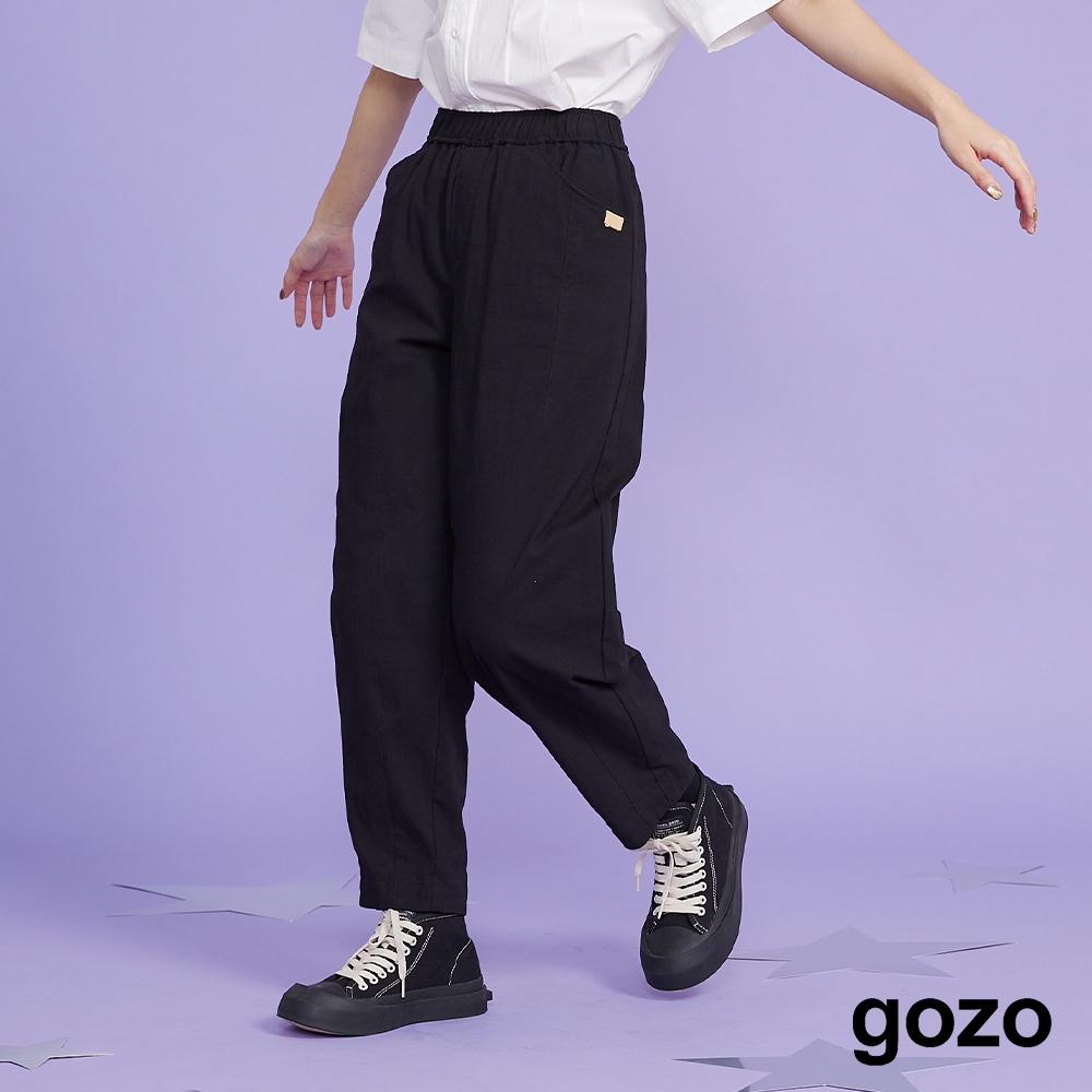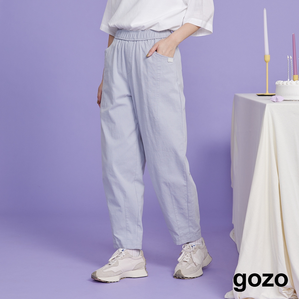 【gozo】仿麻剪接鬆緊廓形褲(淺灰/黑色_M/L) | 女裝 修身 休閒淺灰,M|淺灰,L|黑色,M|黑色,LPantsgozo 品牌旗艦店