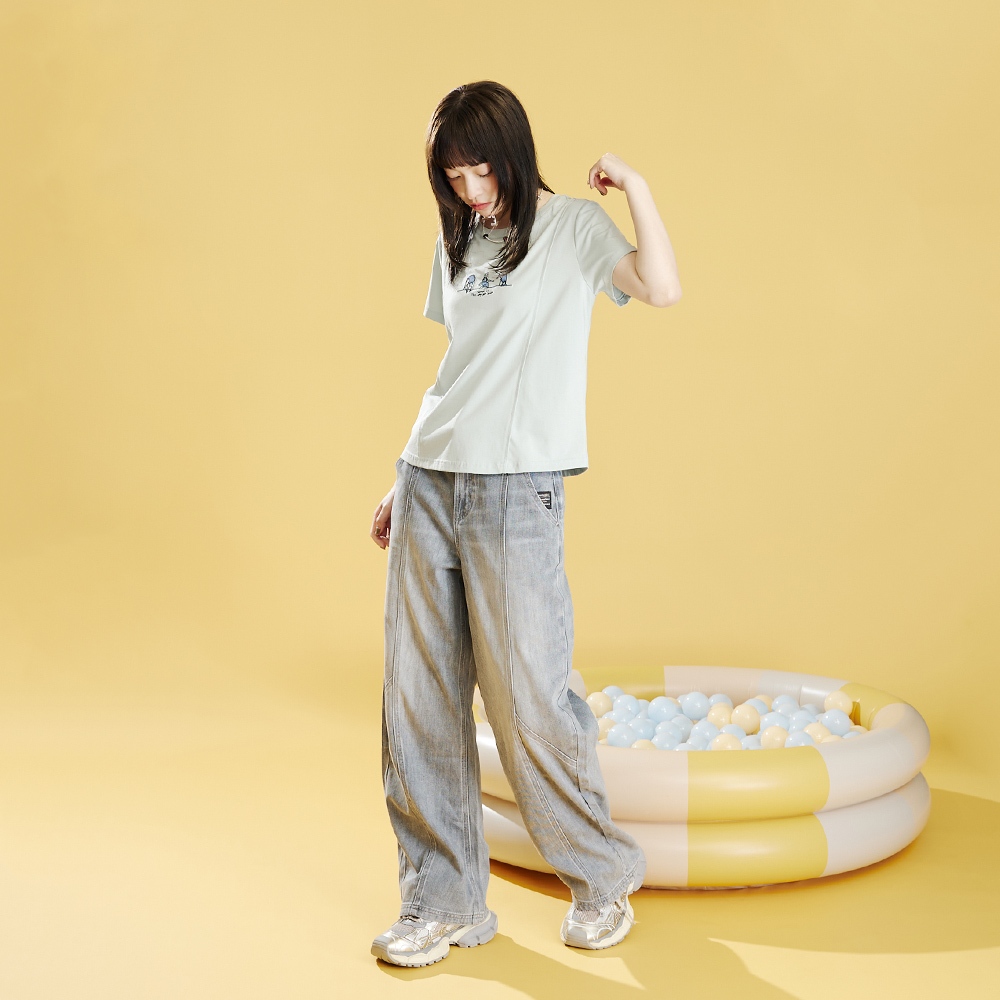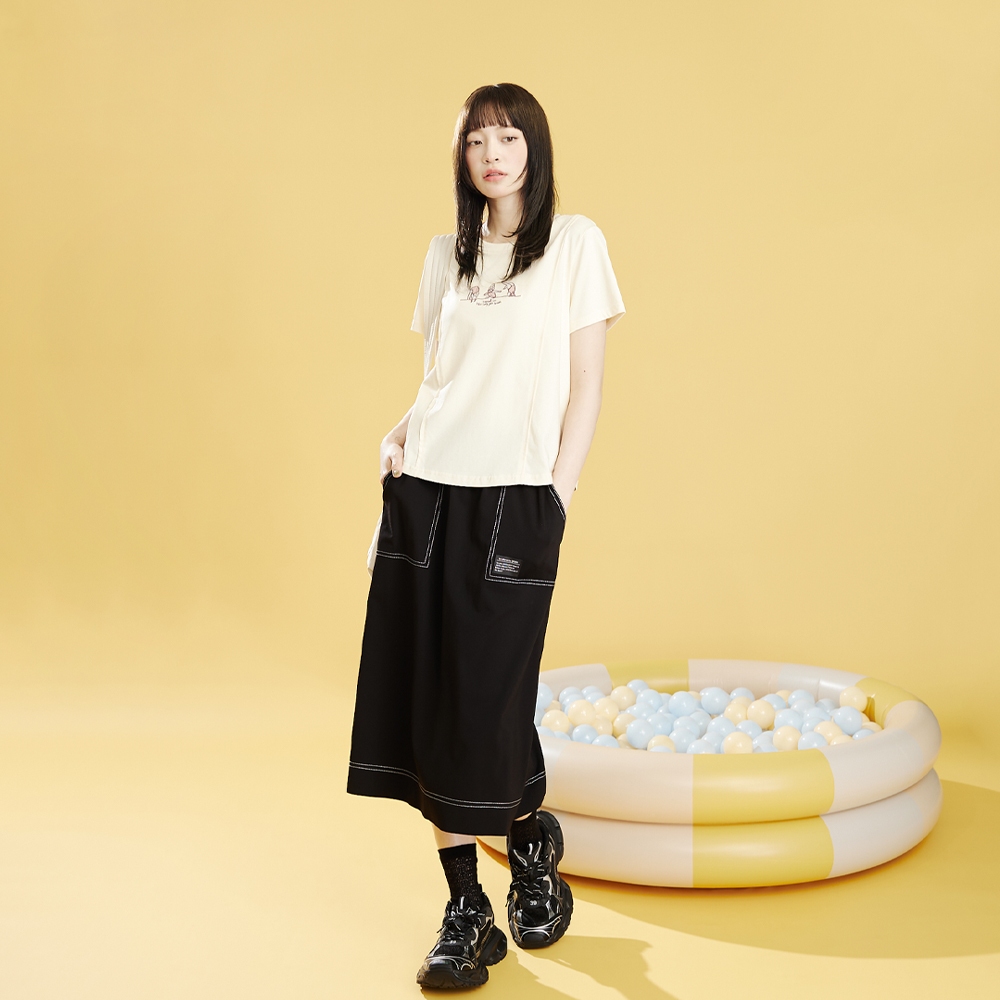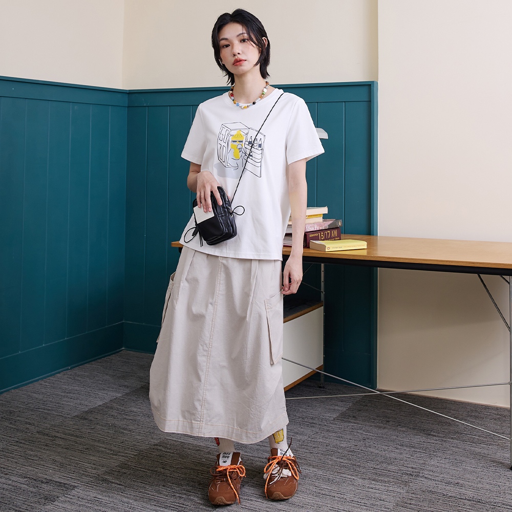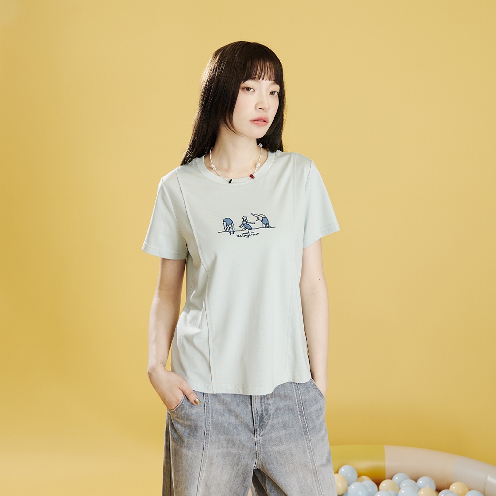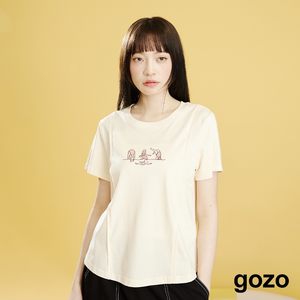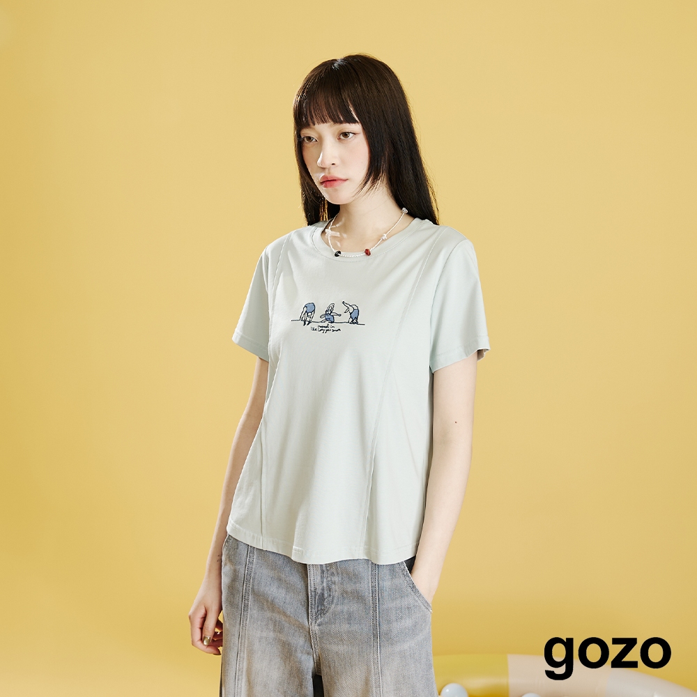 【gozo】➤跳水的人線條合肩涼感T恤(米黃/淺綠_F) | 女裝 圓領 休閒米黃,F|淺綠,FT-shirtsgozo 品牌旗艦店
