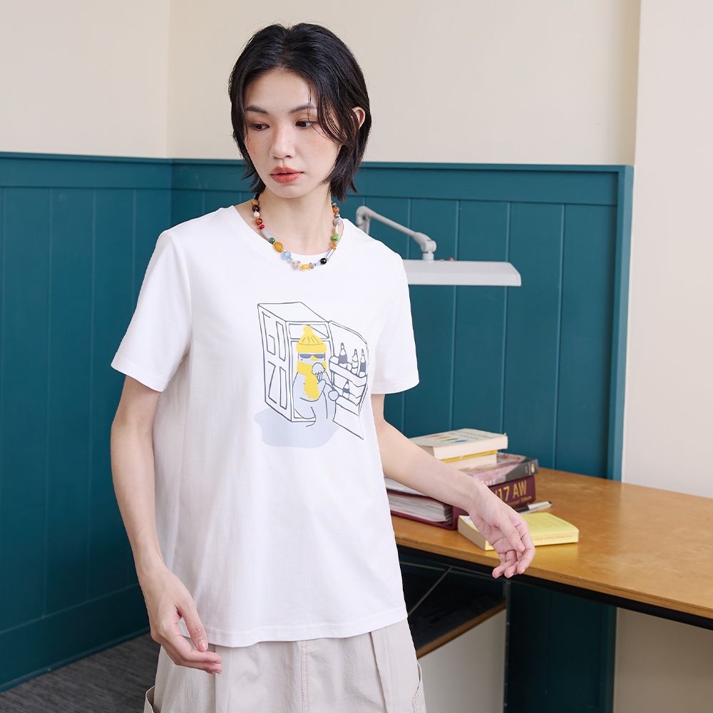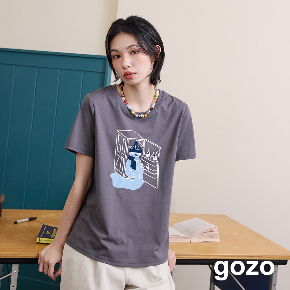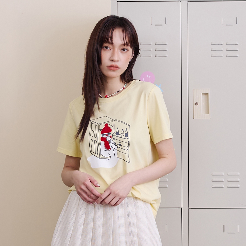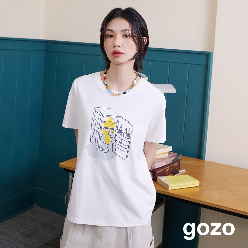 【gozo】➤雪人躲冰箱吹冷氣涼感T恤(淺黃/白色/深灰_F) | 女裝 圓領 休閒淺黃,F|白色,F|深灰,FT-shirtsgozo 品牌旗艦店