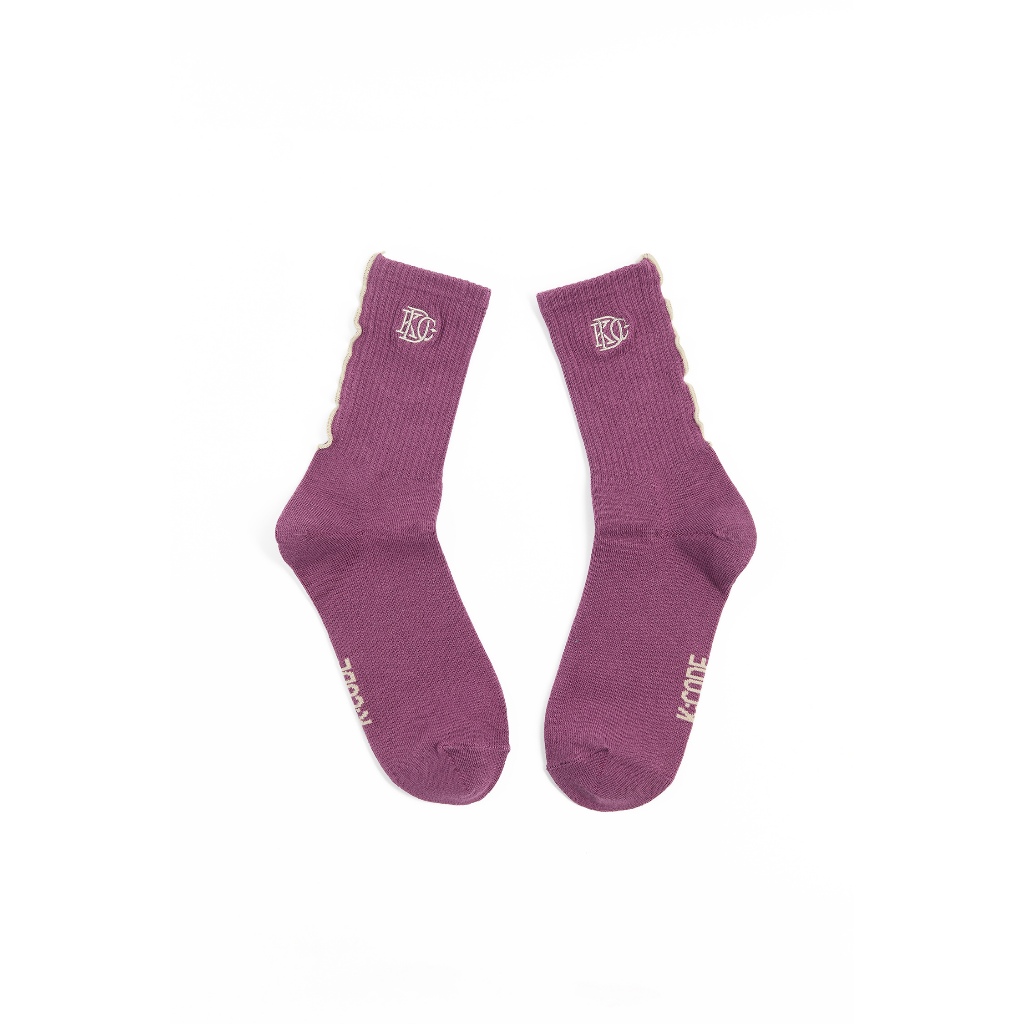 K:CODE 捲邊電繡中筒襪-25005黑色,F|白色,F|微風杏,F|深紫,FSocksLife8 米斯特國際 品牌旗艦店