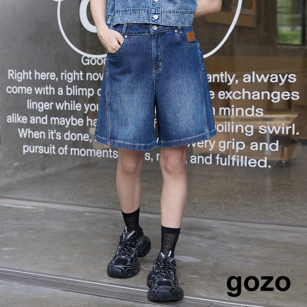 【gozo】男孩風斜車線牛仔4分短褲(藍色/深藍_M/L) | 女裝 顯瘦 百搭 牛仔藍色,M|藍色,L|深藍,M|深藍,Lgozo 品牌旗艦店