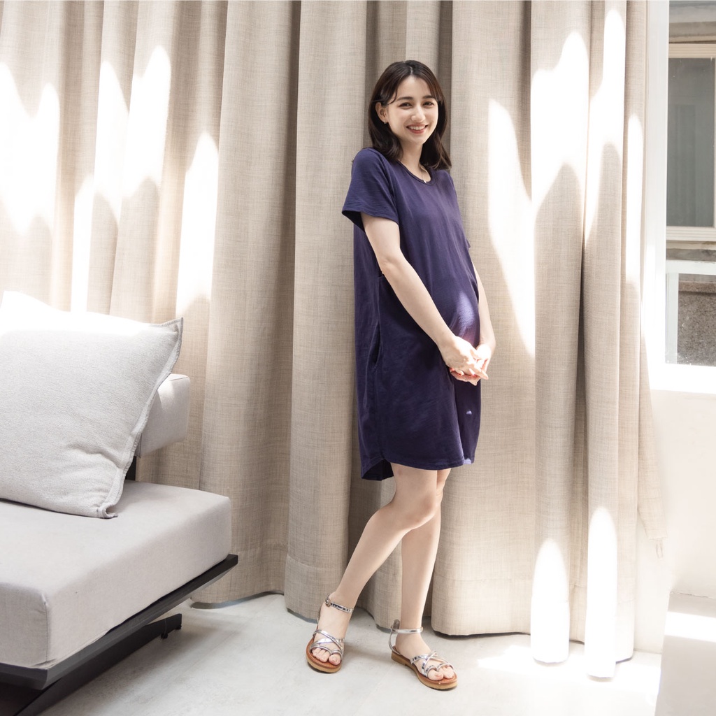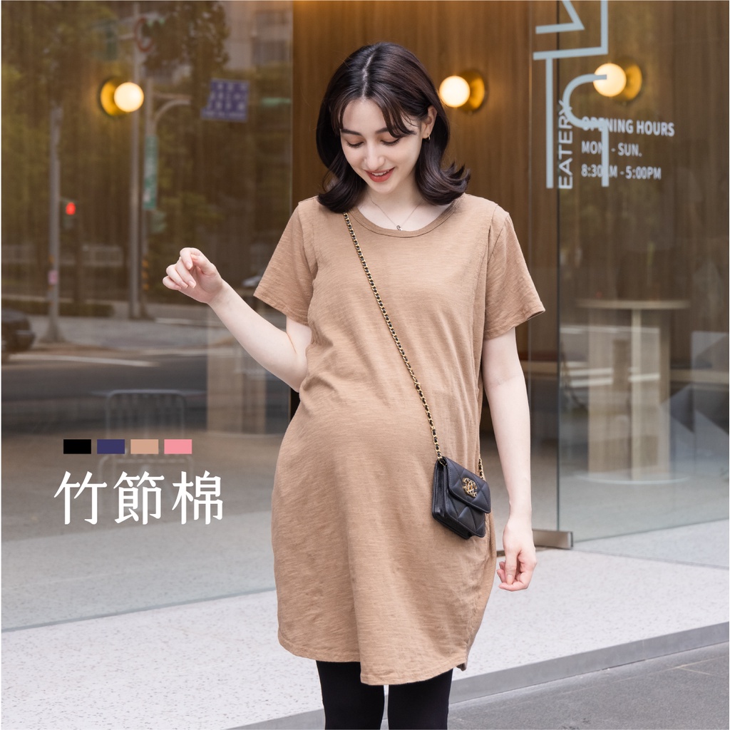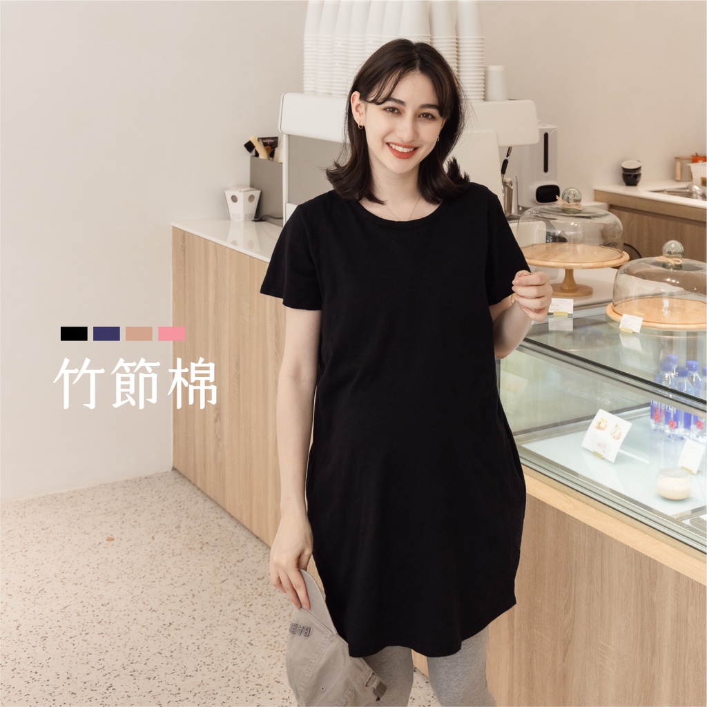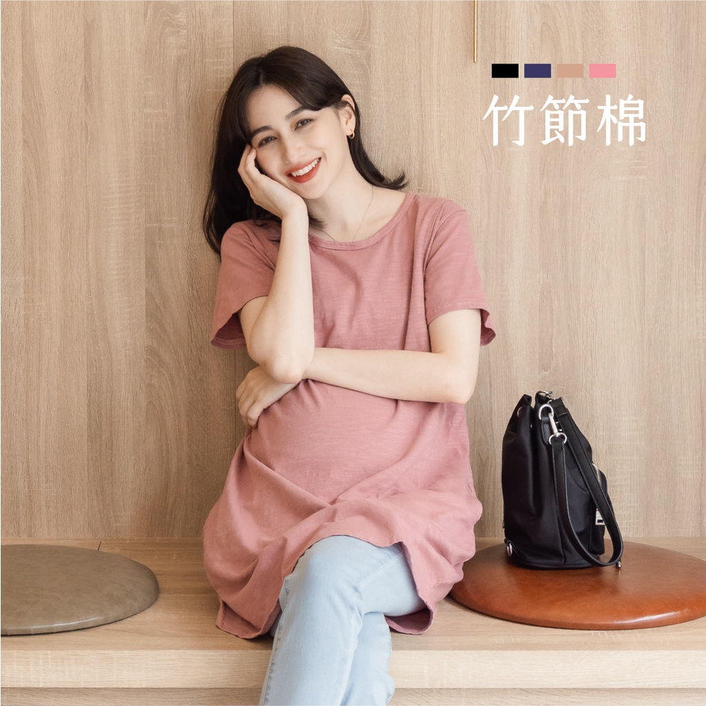 Mamamia孕婦裝 舒適日常竹節棉長版哺乳衣 正韓製 喂奶衣 短袖 孕婦上衣 孕婦裝 長版上衣 [A1835]黑|咖啡|粉|灰|藍Breastfeeding WearMamamia孕婦裝