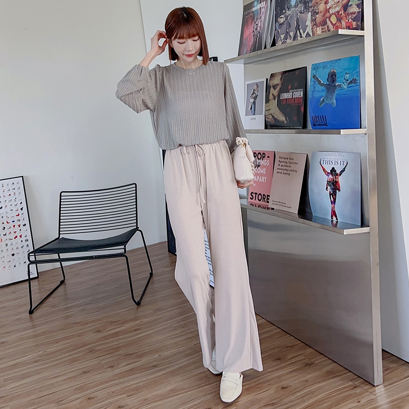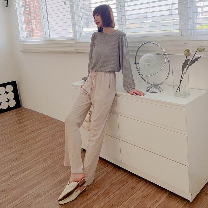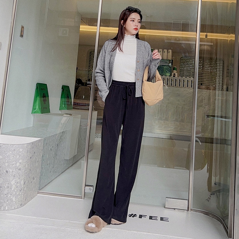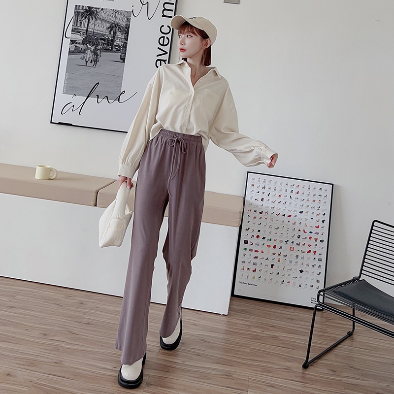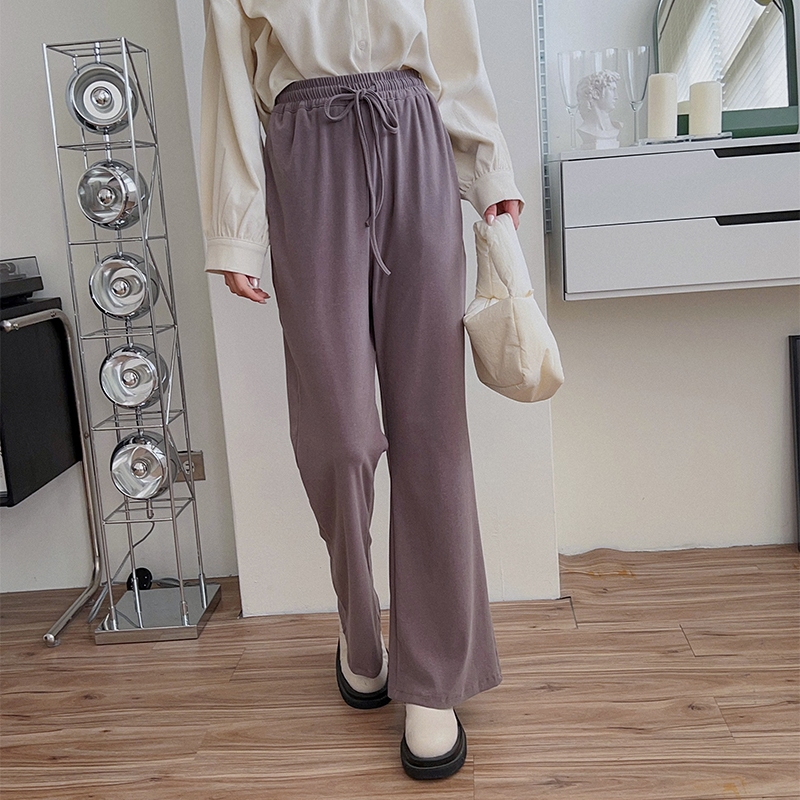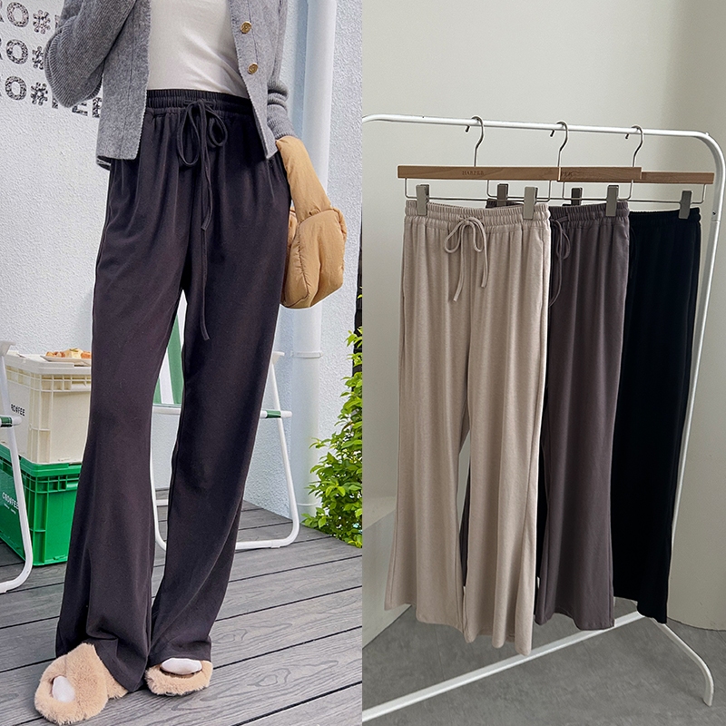 【HARPER】悠閒日常鬆緊腰抽繩磨毛微喇叭褲 3色 | 現貨 長褲 喇叭褲 磨毛【PNC48147G】灰杏,F|灰紫,F|黑,FPantsHARPER