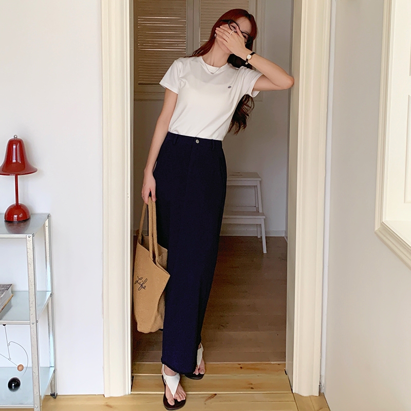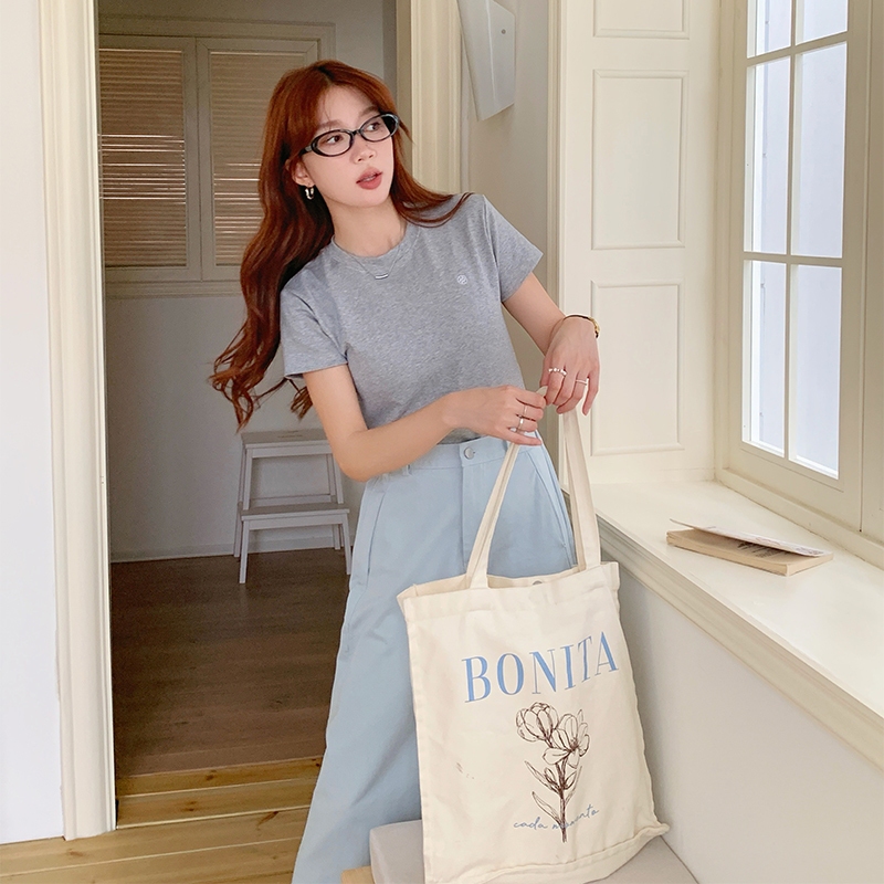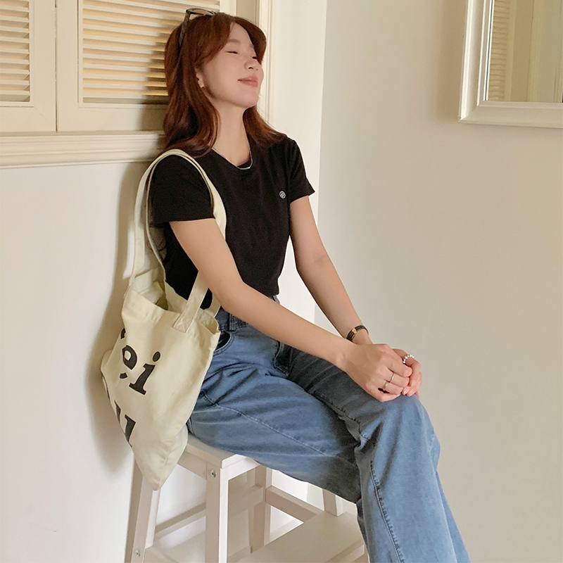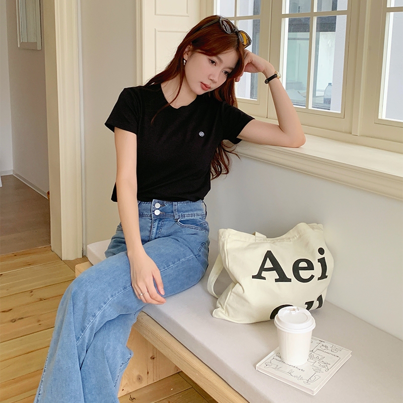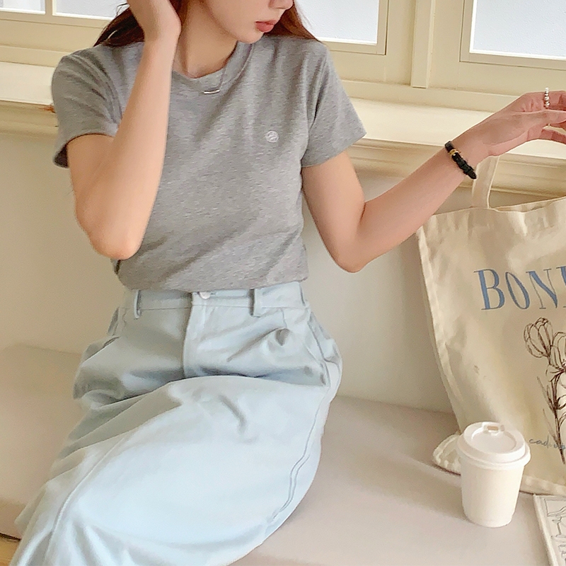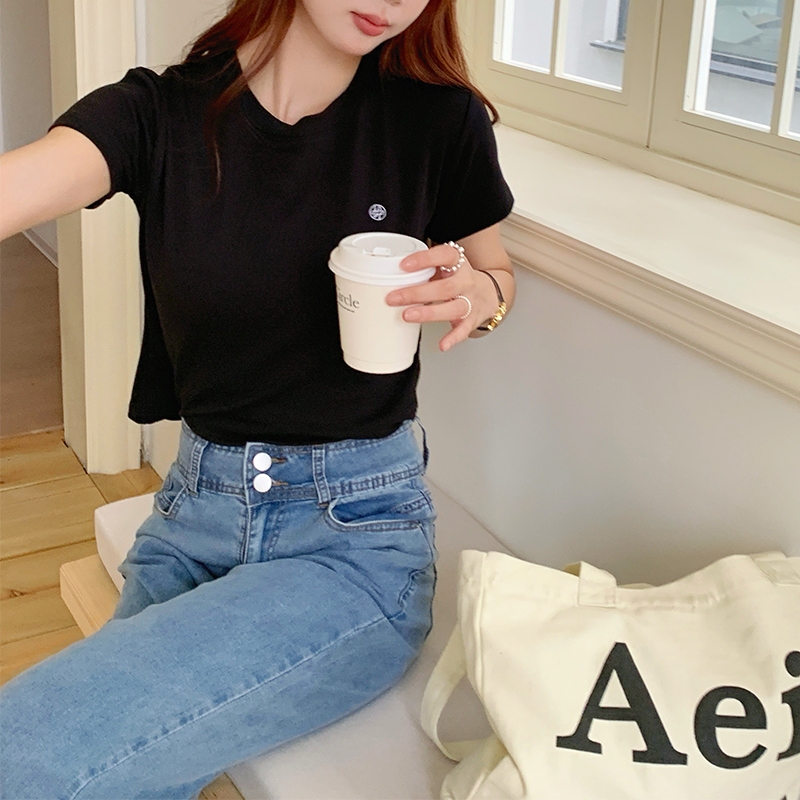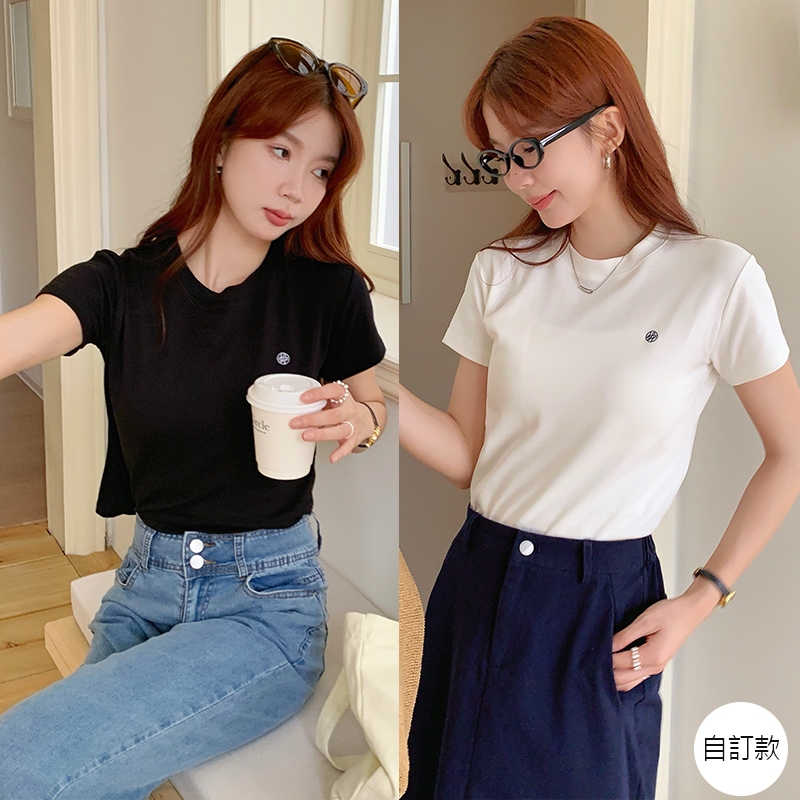 【HARPER】品牌自訂Logo刺繡水柔棉T恤 | 現貨 短袖上衣 短版 百搭 T恤【CLF14133J】白,S|白,M|白,L|白,XL|花灰,S|花灰,M|花灰,L|花灰,XL|黑,S|黑,M|黑,L|黑,XLT-shirtsHARPER