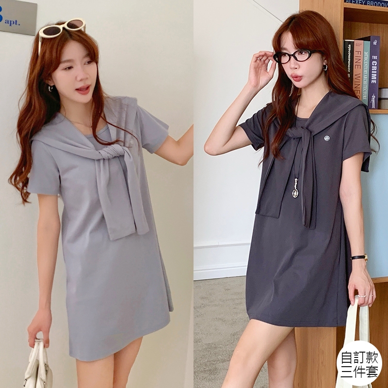 【HARPER】品牌自訂三件式刺繡洋裝+短褲 附披肩 | 現貨 短洋裝 三件式 披肩 短褲【DSB41033J】灰藍,S~M|灰藍,L~XL|深灰,S~M|深灰,L~XLHARPER
