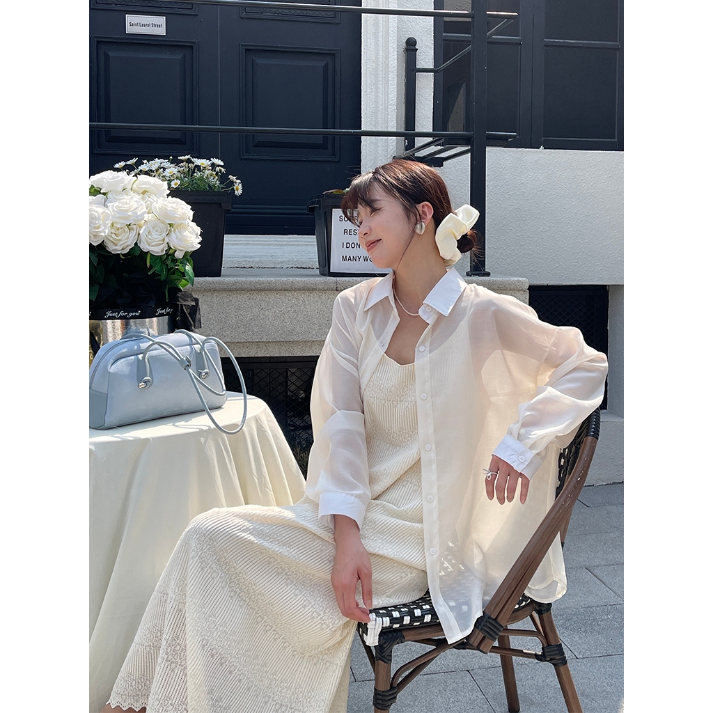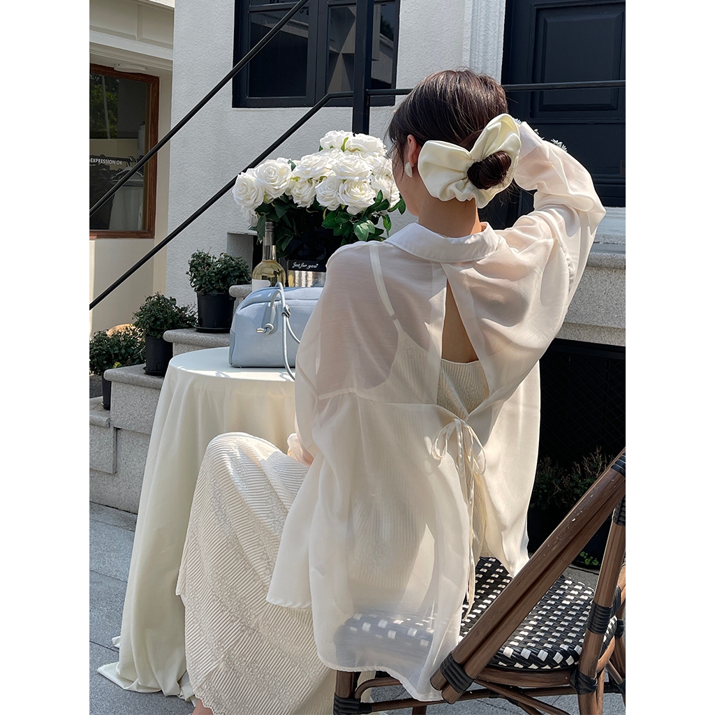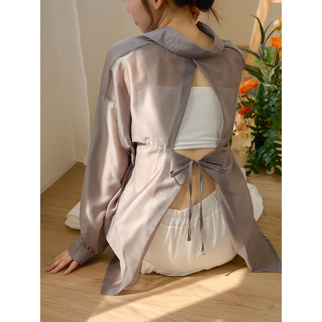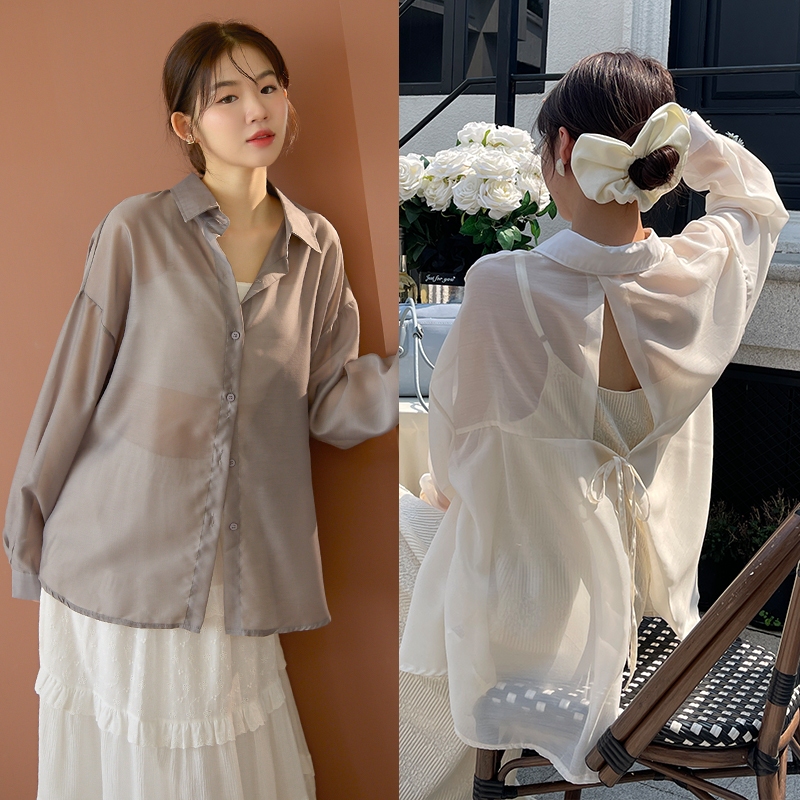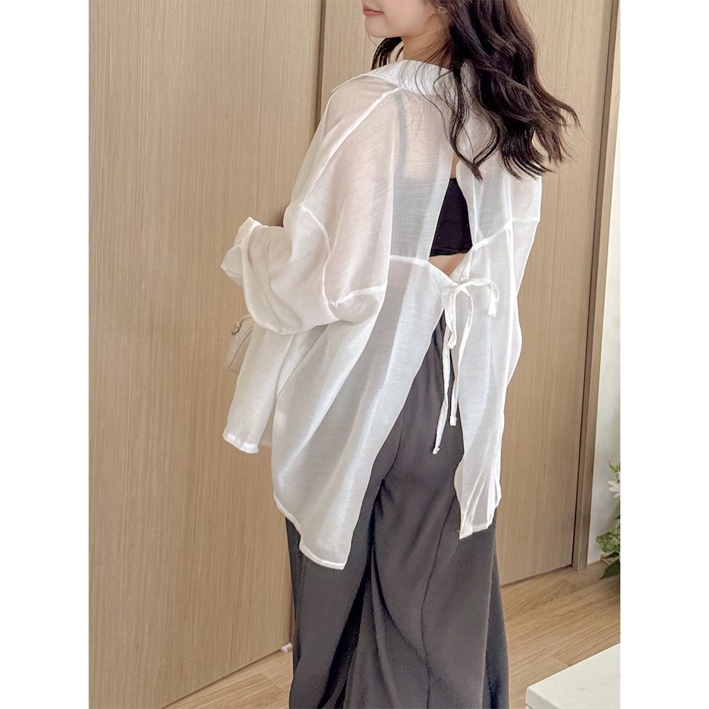 【HARPER】後開衩綁帶透膚襯衫 | 現貨 長袖上衣 襯衫 透膚【CLB44015J】白,F|杏,F|灰,FShirts & BlousesHARPER