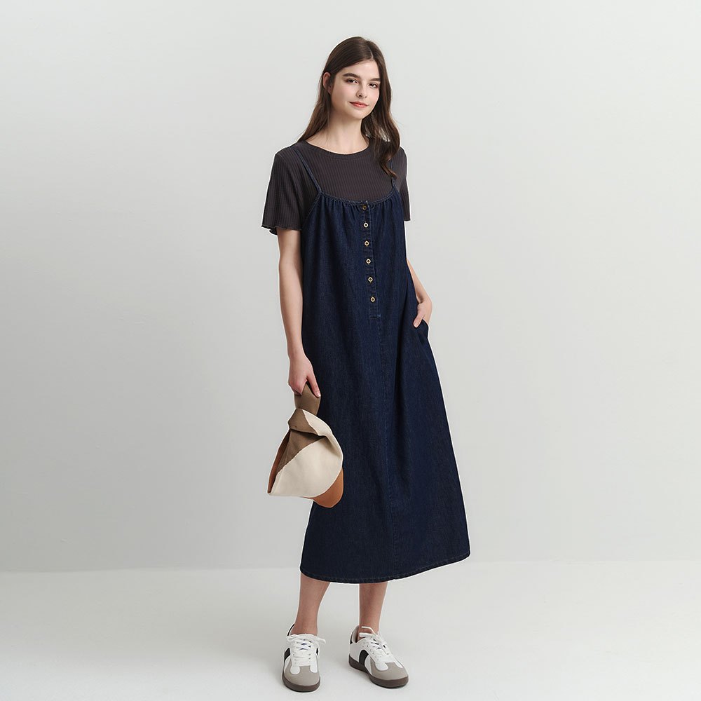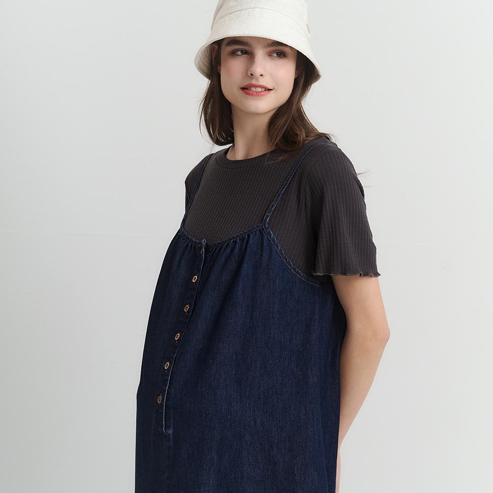 【Mamaway媽媽餵】假兩件式牛仔細肩帶孕哺洋裝深藍,S|深藍,M|深藍,L|深藍,XLMaternity DressesMamaway 媽媽餵 母嬰品牌領導者