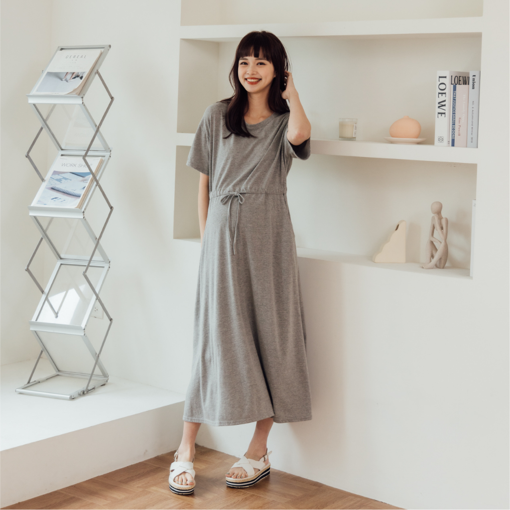Mamamia孕婦裝 舒感生活圓領洋裝 孕婦裝 孕婦裙 孕婦洋裝 短袖 洋裝 孕婦穿搭 [A1968]黑|灰|藍Maternity DressesMamamia孕婦裝