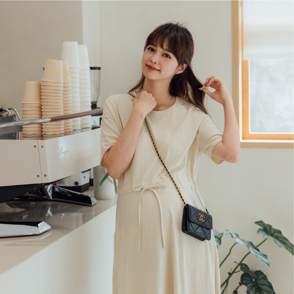 Mamamia孕婦裝 休閒收腰綁帶短袖孕婦裝 正韓製 孕婦裙 孕婦洋裝 短袖 洋裝 孕婦 [A1779]綠|黑|灰|杏|卡其Maternity DressesMamamia孕婦裝