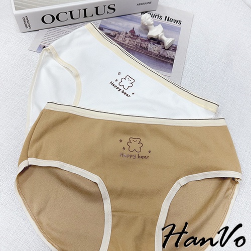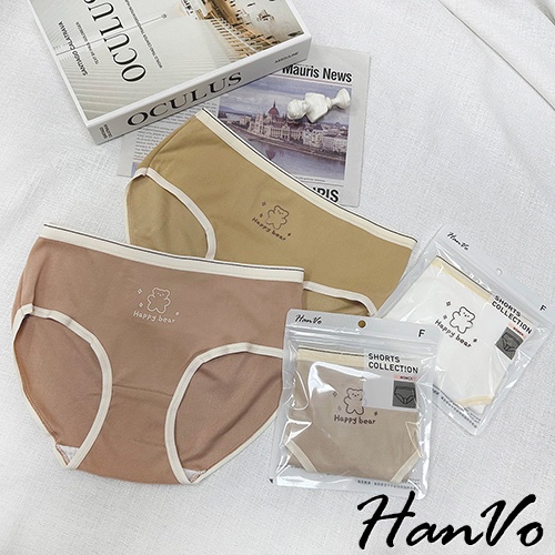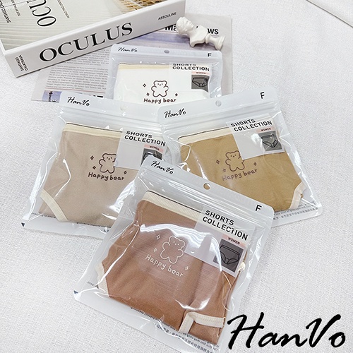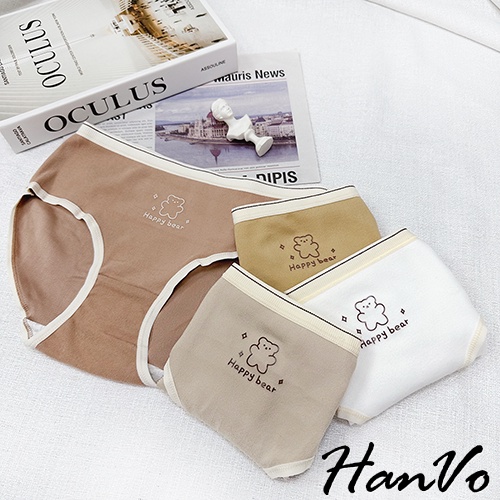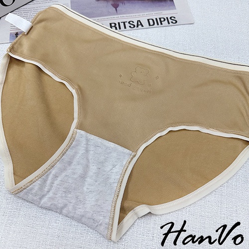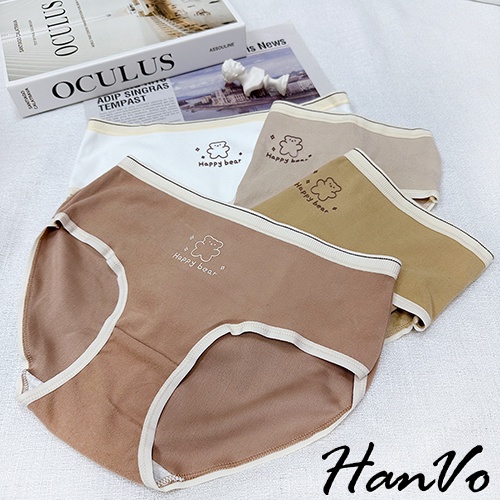 【HanVo】冬日舒服磨毛款 快樂熊熊磨毛內褲 親膚透氣日系暖宮三角褲 中腰 獨立包裝 少女內褲 內著 A11-5647紅茶拿鐵|奶白|燕麥奶茶|牛奶糖PantiesHanVo Wear Collection