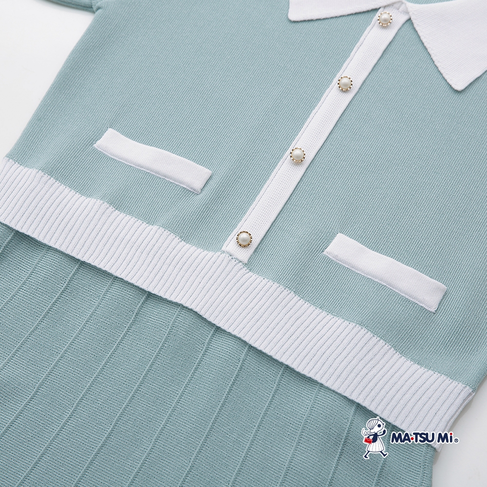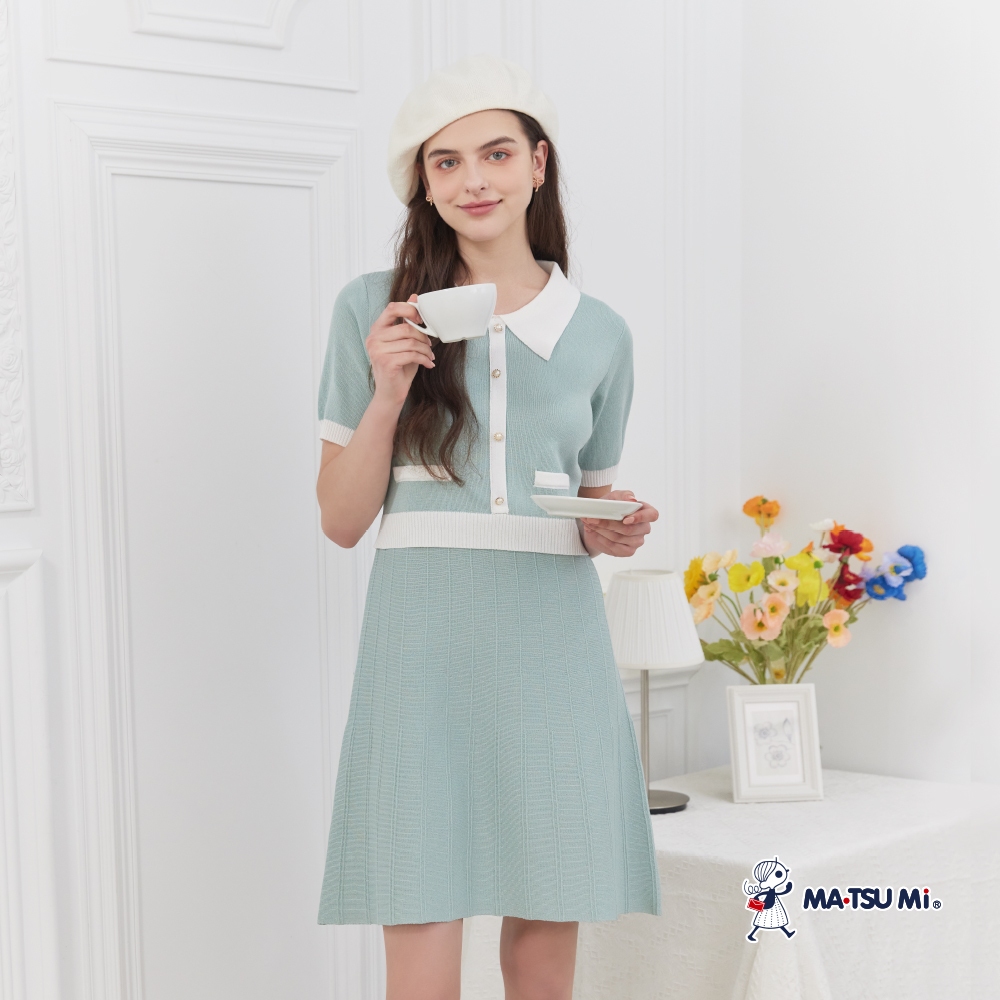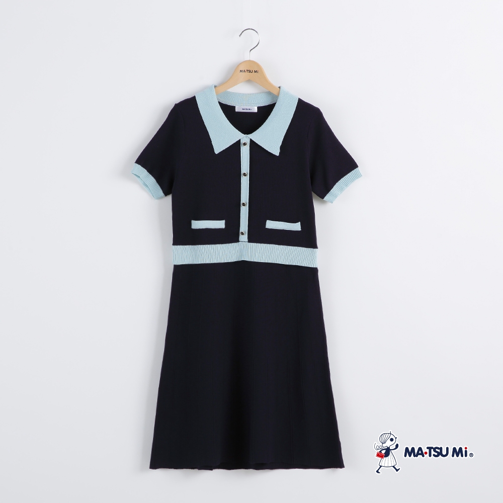 MA‧TSU Mi 撞色翻領珍珠釦一件式洋裝(草綠.深藍)草綠,S|草綠,M|草綠,L|深藍,S|深藍,M|深藍,LMA•TSU Mi瑪之蜜官方旗艦店