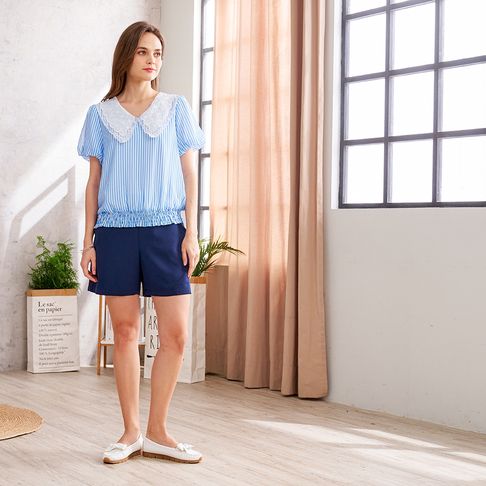 【CUMAR】純色雙環腰帶修身短褲 藍 卡藍/M|卡/M|藍/L|卡/LShortsINLook 流行女裝品牌旗艦店