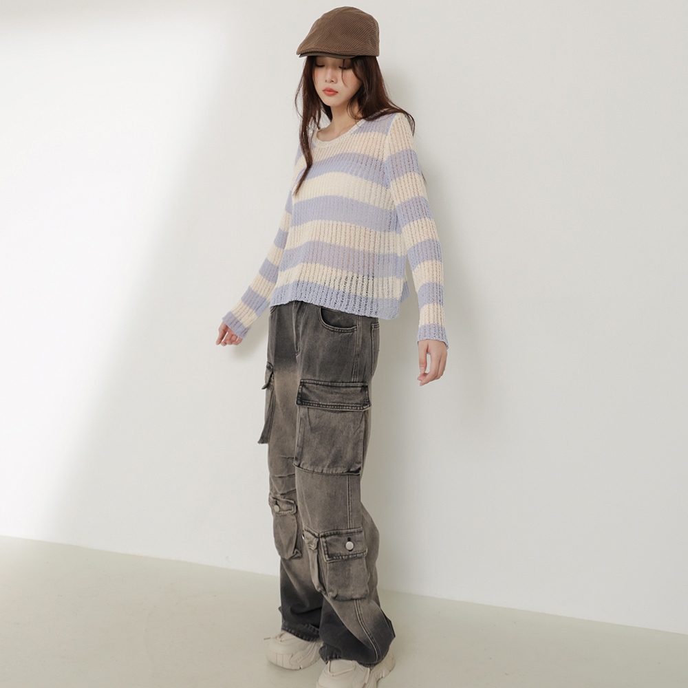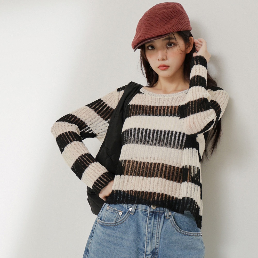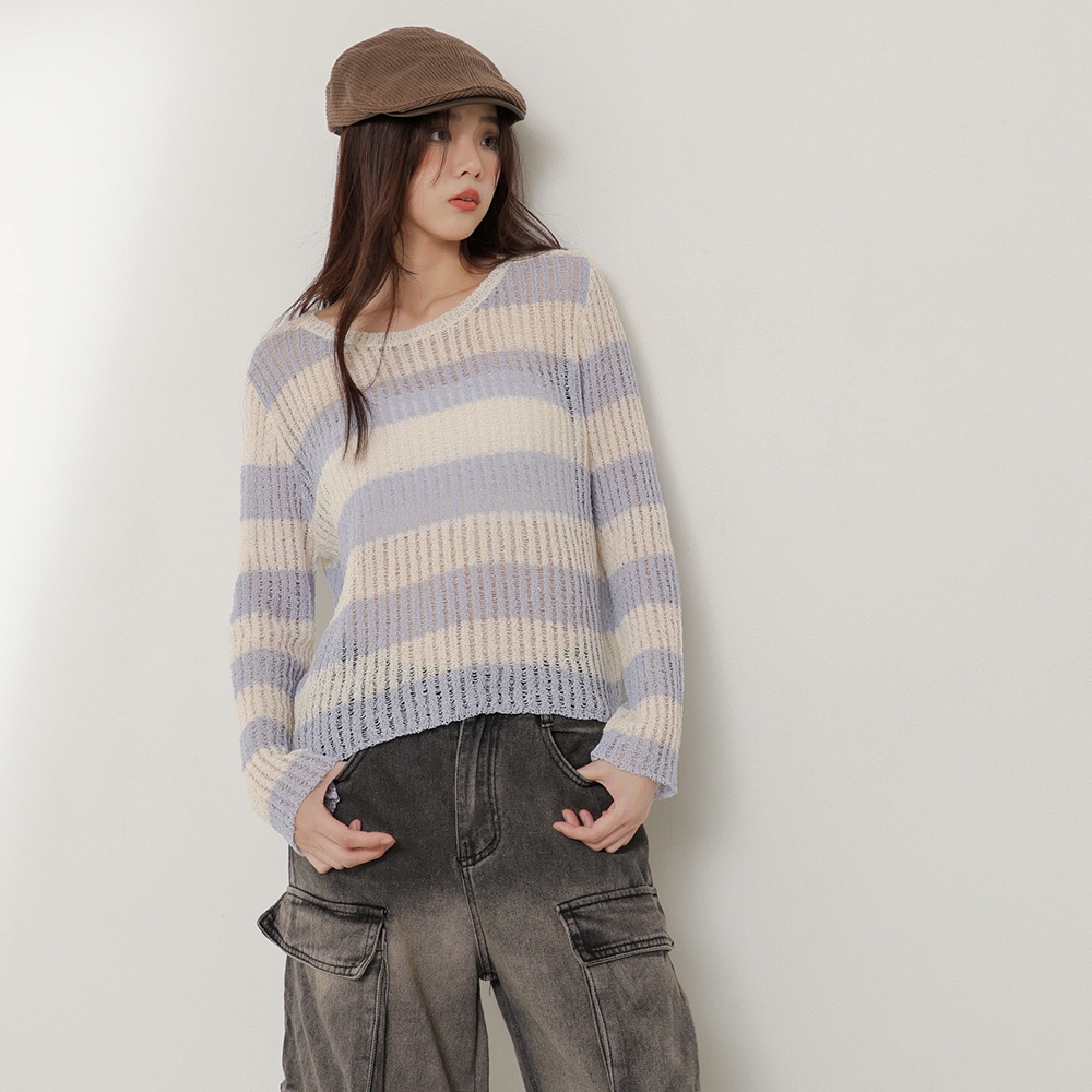 IN SHOP 寬鬆橫條針織上衣-共3色【KT224031】卡|藍|黑IN’ SHOP 旗艦店