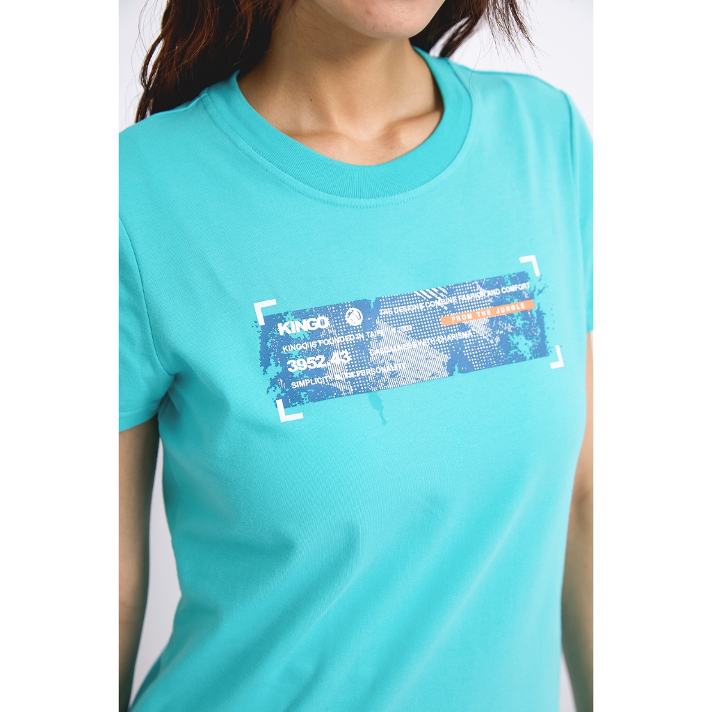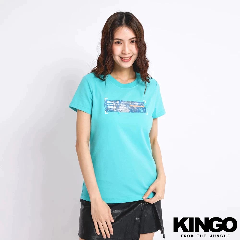 KINGO女款|淺藍BOX印花T恤