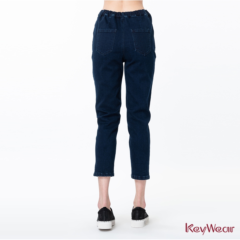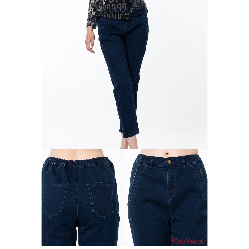 【KeyWear 奇威名品】寬鬆舒適內磨毛修身牛仔褲 深藍色L|MPantsKeywear奇威官方旗艦店