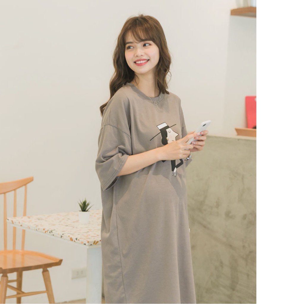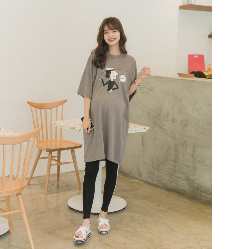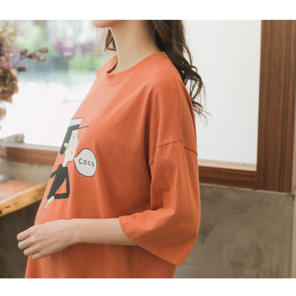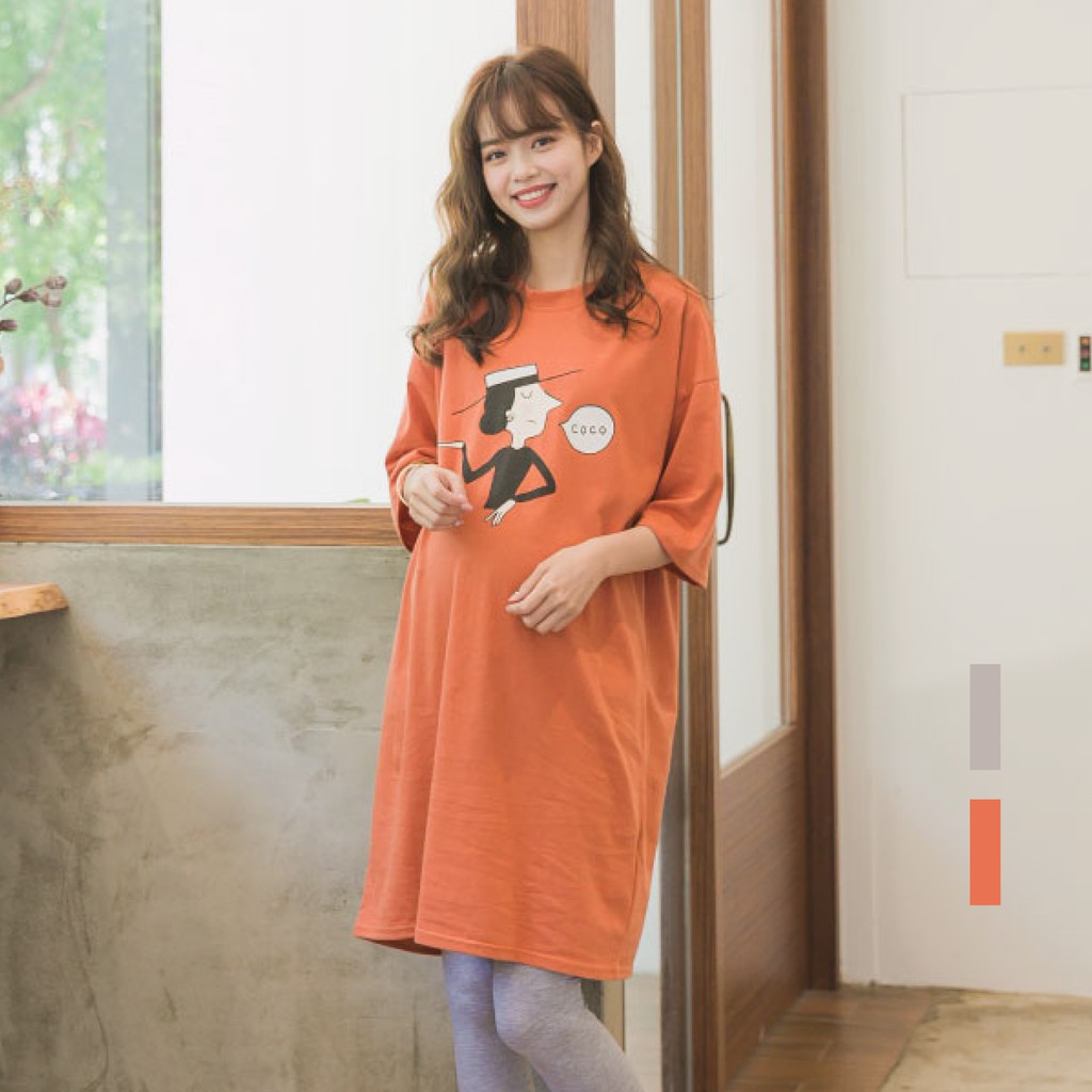 Mamamia孕婦裝 coco女人塗鴉寬版T孕婦裝 正韓製 短袖 孕婦上衣 長版上衣 長版T 孕婦裝[C3083]灰|橘Maternity DressesMamamia孕婦裝