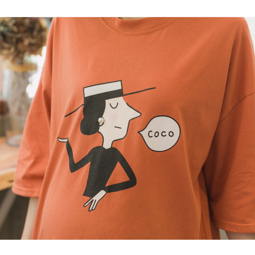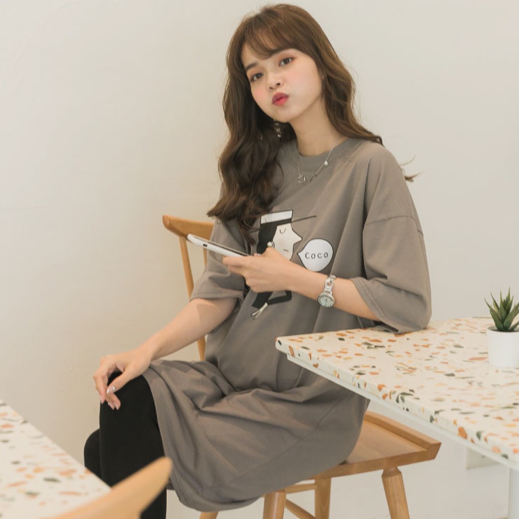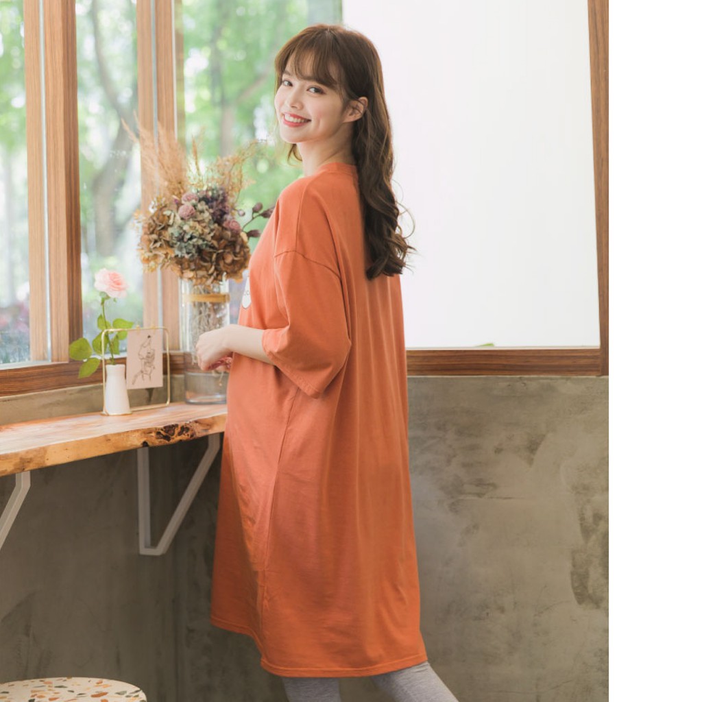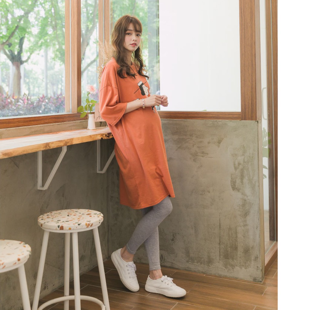 Mamamia孕婦裝 coco女人塗鴉寬版T孕婦裝 正韓製 短袖 孕婦上衣 長版上衣 長版T 孕婦裝[C3083]灰|橘Maternity DressesMamamia孕婦裝