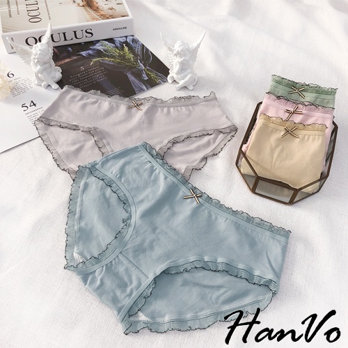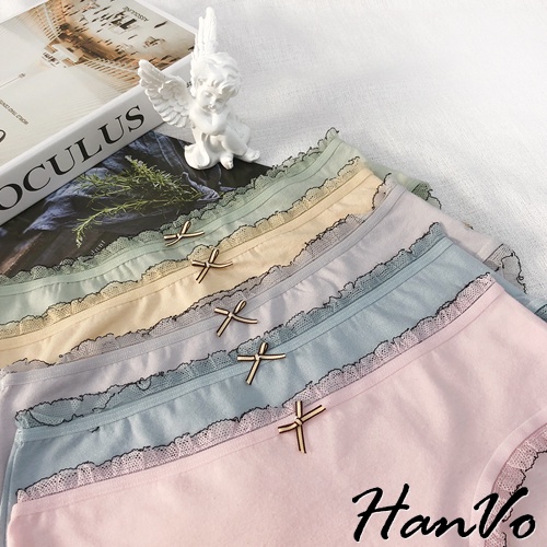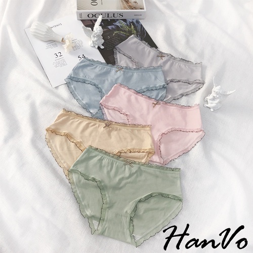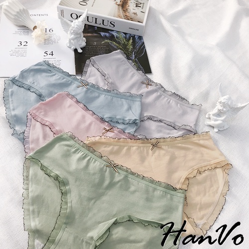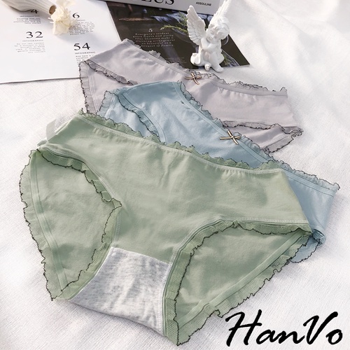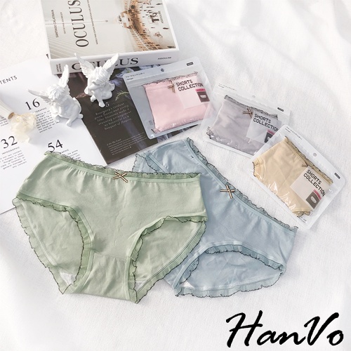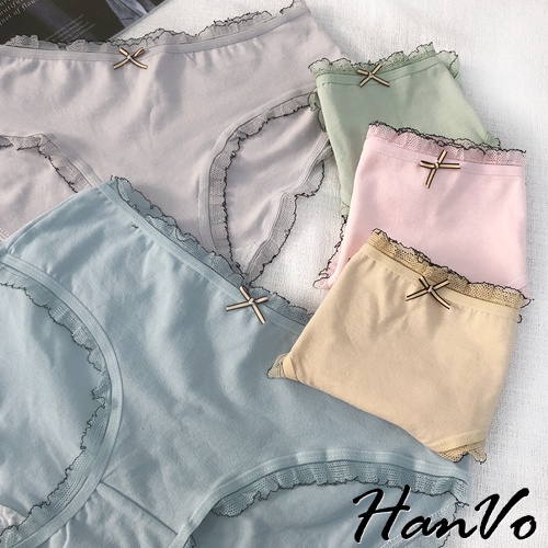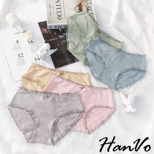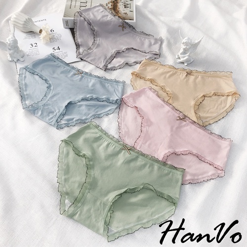 【HanVo】輕甜糖果色滾邊中腰內褲 甜美舒適親膚透氣日系三角褲 獨立包裝 流行少女內褲 內著 A11-5600花瓣嫩粉|牛油果綠|霧感藕灰|蜜檸果橙|冰河霧藍|NG福利品(不挑色不退貨)PantiesHanVo Wear Collection