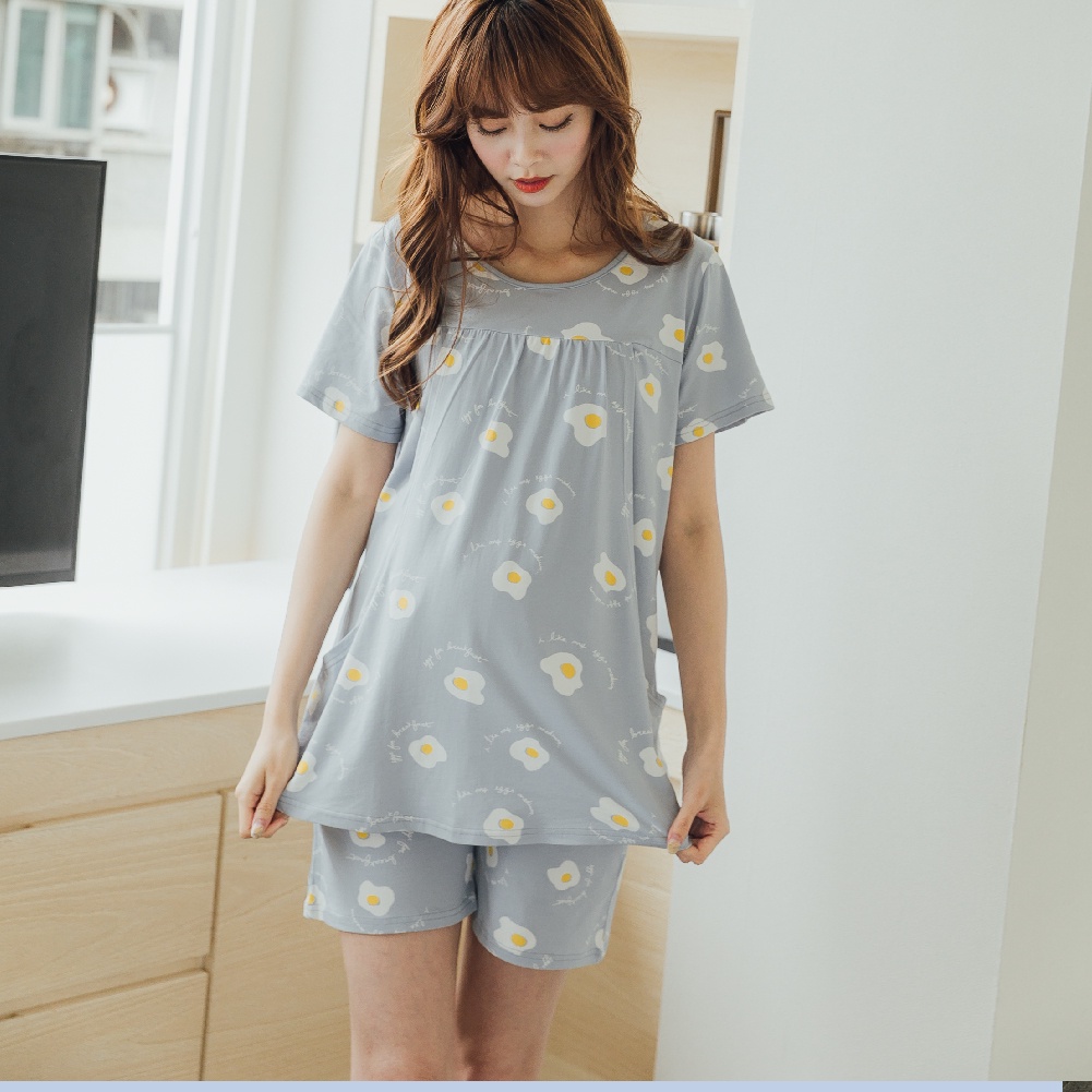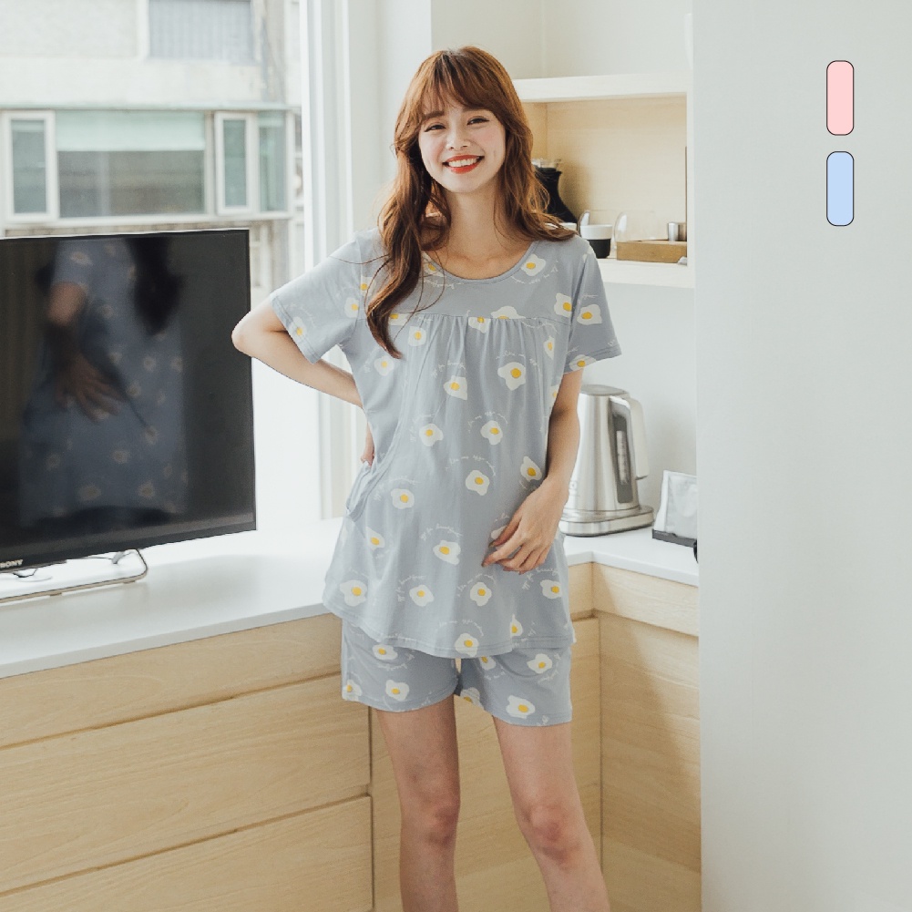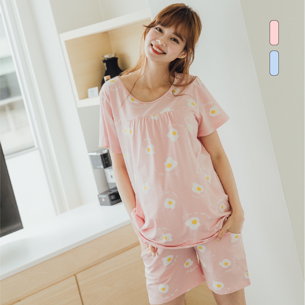 Mamamia孕婦裝 超Q荷包蛋哺乳套裝 M~XL 哺乳睡衣 喂奶衣 短袖 哺乳衣 月子服 孕婦裝[A1641]藍,M|藍,L|藍,XL|粉,M|粉,L|粉,XLBreastfeeding WearMamamia孕婦裝